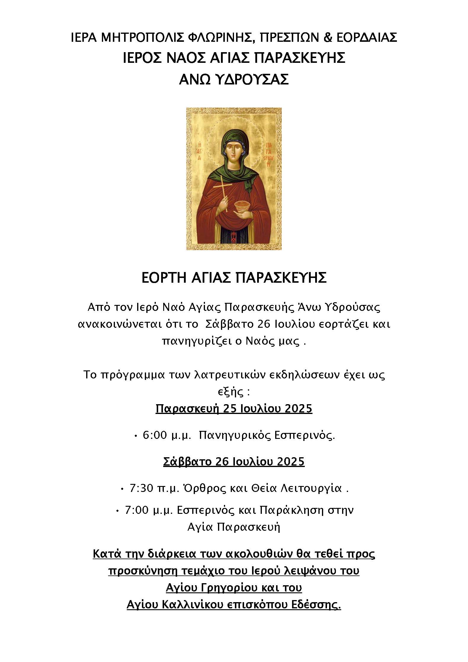 ΚοινωνίαΛατρευτικές εκδηλώσεις στον Ιερό Ναό Αγίας Παρασκευής Άνω Υδρούσας Πέμπτη 24 Ιουλίου, 2025 18:14 florinapress.gr SHARE Ίσως να ενδιαφέρει ... Ο δικός μας “Γολγοθάς”κάθε χειμώνα ,κάθε χρόνο.. Πάρε και εσύ μέρος στον “3ος Πανελλήνιος διαγωνισμός συγγραφής και ερμηνείας πρωτότυπου μονολόγου επί σκηνής” Επιμορφωτικό σεμινάριο για τους λέβητες φυσικού αερίου στο Επιμελητήριο Φλώρινας Έναρξη αιτήσεων Παρόχων Πιστοποίησης Προσώπων για τη δράση κατάρτισης και απασχόλησης 10.000 ανέργων δικαιούχων Ελάχιστου Εγγυημένου Εισοδήματος και Αστέγων Ανακοίνωση – κάλεσμα σε συλλόγους του Δήμου Αμυνταίου με Χορευτικά Τμήματα Share Ακολουθήστε μας8.4kFollowersLikeΤελευταία νέα Αγανακτισμένοι αγρότες : Ως εδώ, η κατάσταση δεν πάει άλλο Κοινωνία Πέμπτη 4 Δεκεμβρίου, 2025 Επισκέψεις Κινητών Μονάδων Υγείας σε απομακρυσμένες Κοινότητες του Δήμου Αμυνταίου Κοινωνία Πέμπτη 4 Δεκεμβρίου, 2025 Ευχαριστήρια επιστολή του Πειραματικού Σχολείου Φλώρινας προς το Κέντρο Περιβαλλοντικής Εκπαίδευσης & Αειφορίας Μελίτης Κοινωνία Πέμπτη 4 Δεκεμβρίου, 2025 Πωλείται Γερμανικός λέβητας ξύλου Κοινωνία Πέμπτη 4 Δεκεμβρίου, 2025