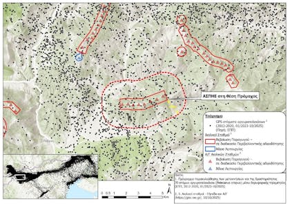 Πράγματι, πάνω από το γήπεδο κατασκευής του εν λόγω ΑΣΠΗΕ είχαν καταγραφεί 15 στίγματα από πομπούς που η Εταιρία Προστασίας Πρεσπών έχει τοποθετήσει σε αργυροπελεκάνους, σε ένα ελάχιστο τμήμα του πληθυσμού του εμβληματικού αυτού είδους, ενώ σήμερα καταγράφονται ακόμη περισσότερα, όπως φαίνεται στον ακόλουθο χάρτη.