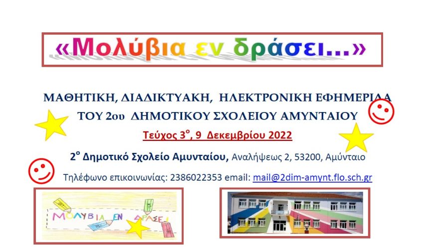 Το 3ου τεύχος της μαθητικής εφημερίδας του 2ου Δημοτικού σχολείου Αμυνταίου “Μολύβια εν δράσει!”