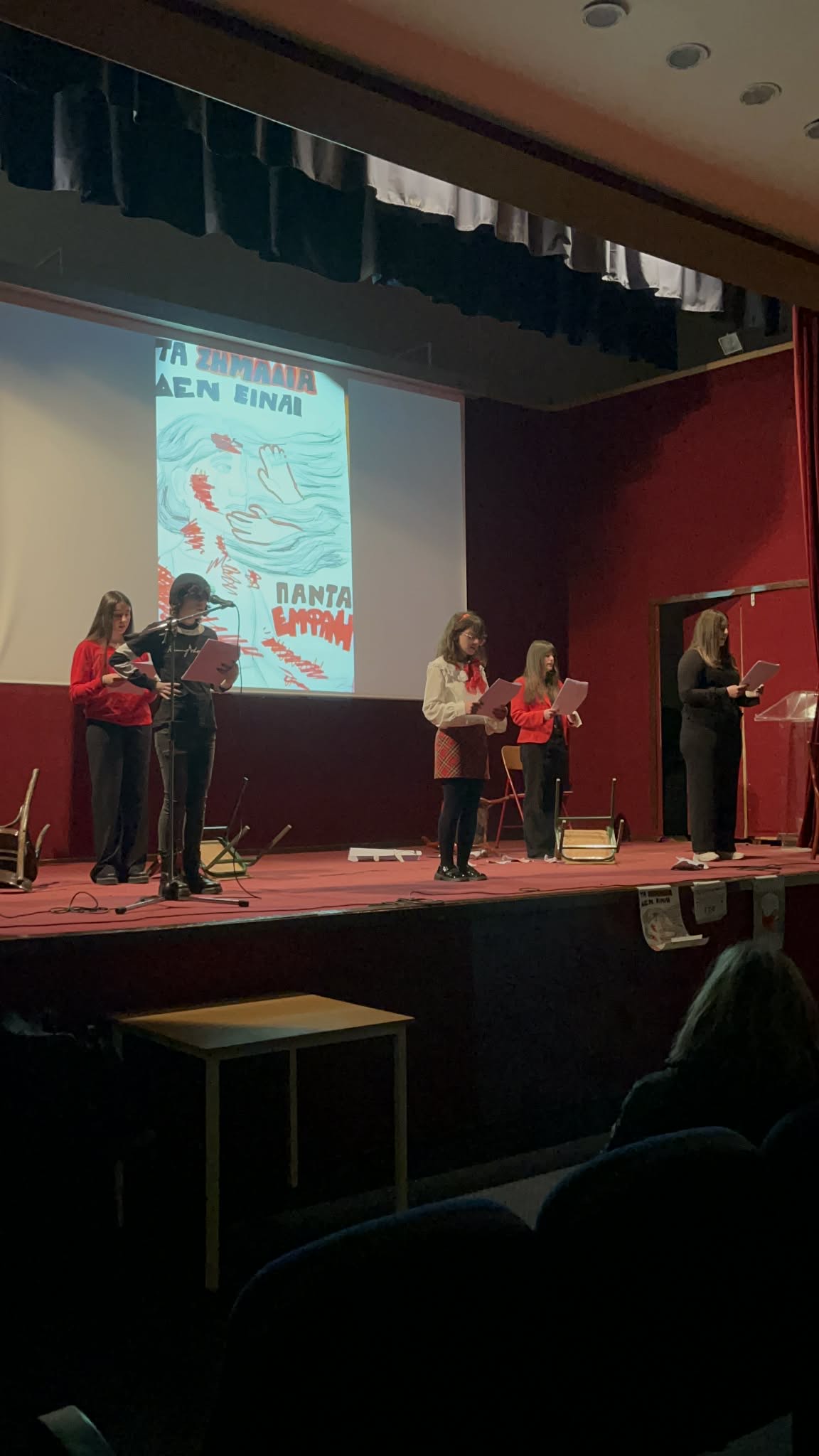 Με μεγάλη επιτυχία ολοκληρώθηκε η εκδήλωση του Εφηβικού Θεατρικού Εργαστηρίου της Στέγης Γραμμάτων και Τεχνών Αμυνταίου που έγινε στο Πνευματικό Κέντρο με αφορμή την Παγκόσμια ημέρα για την εξάλειψη της βίας κατά των γυναικών.
