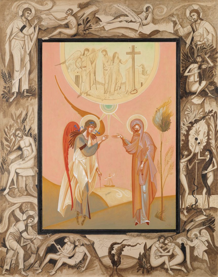 Εικόνα: Ο Ευαγγελισμός της Θεοτόκου με σκηνές από τη Δημιουργία του ανθρώπου και την έξοδο από τον Παράδεισο, Γεώργιος Κόρδης, 2020.