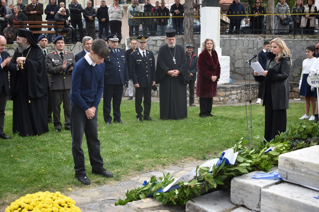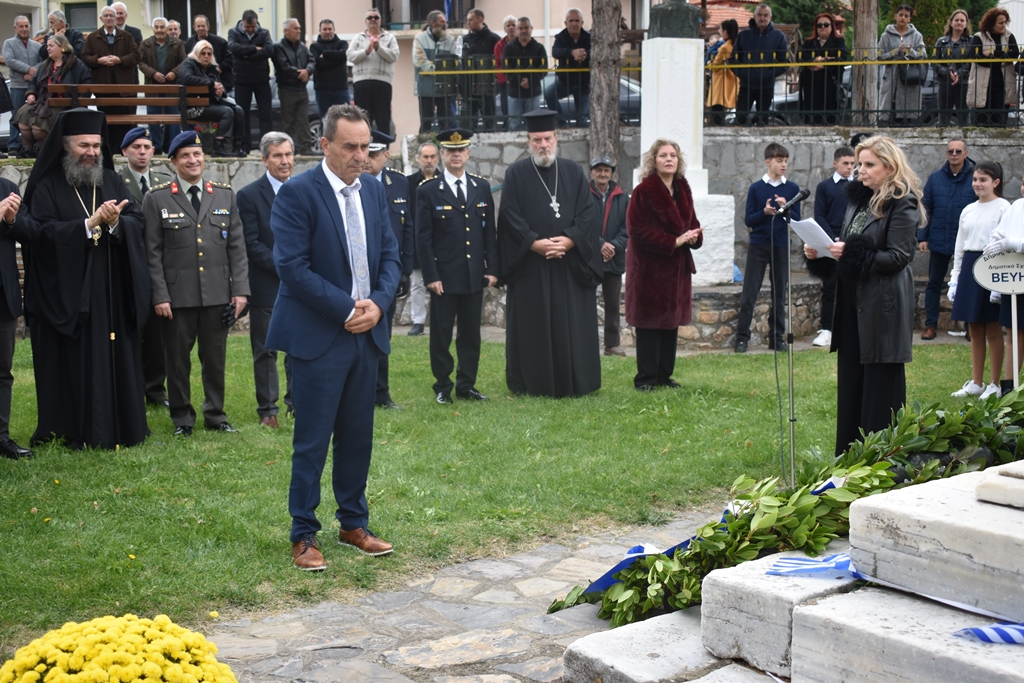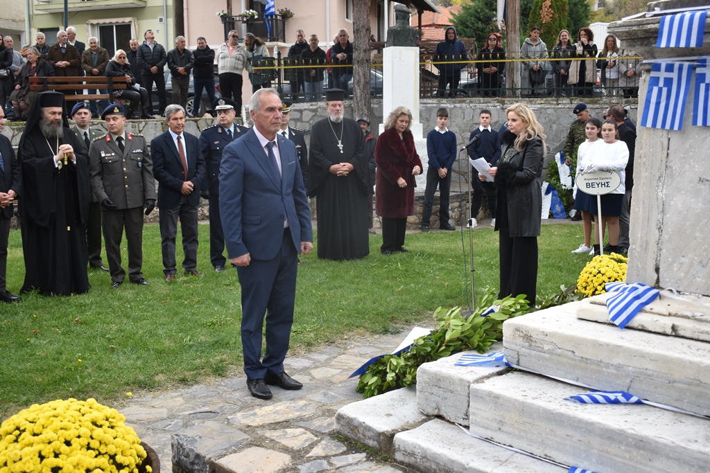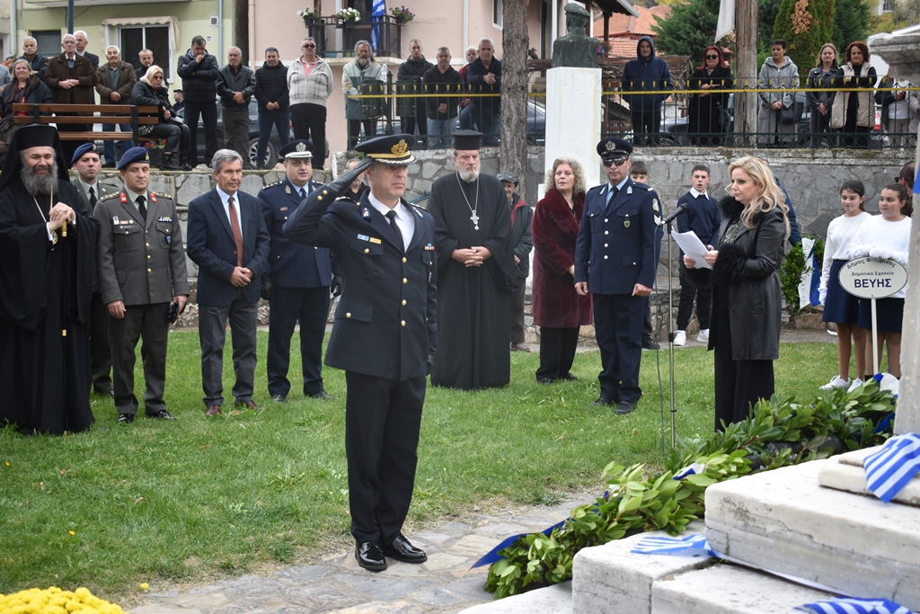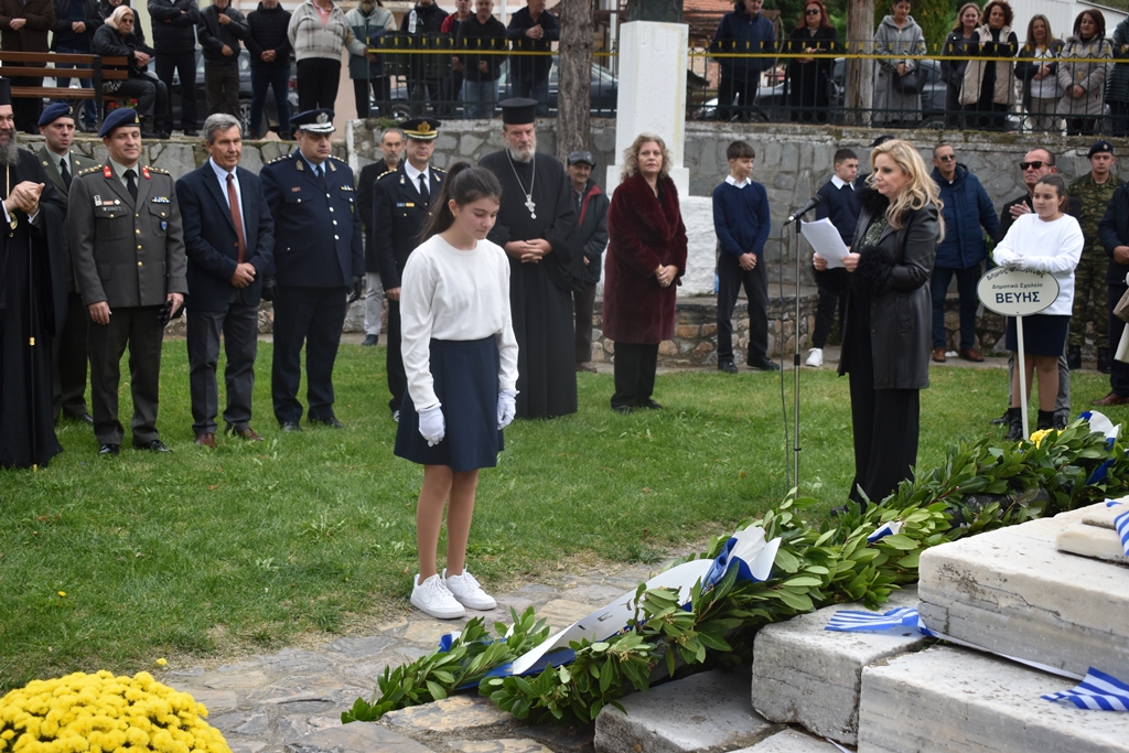 Οι εκδηλώσεις ξεκίνησαν με επιμνημόσυνη δέηση στον χώρο του Ηρώου της κοινότητας και ακολούθησε ομιλία για το ιστορικό της επετείου από την φιλόλογο – διευθύντρια του Γυμνασίου Βεύης κα Βασιλική Μούζα, προσκλητήριο πεσόντων κατοίκων της Βεύης, κατάθεση στεφάνων και η ανάκρουση του εθνικού ύμνου από την Φιλαρμονική του Δήμου Φλώρινας.
