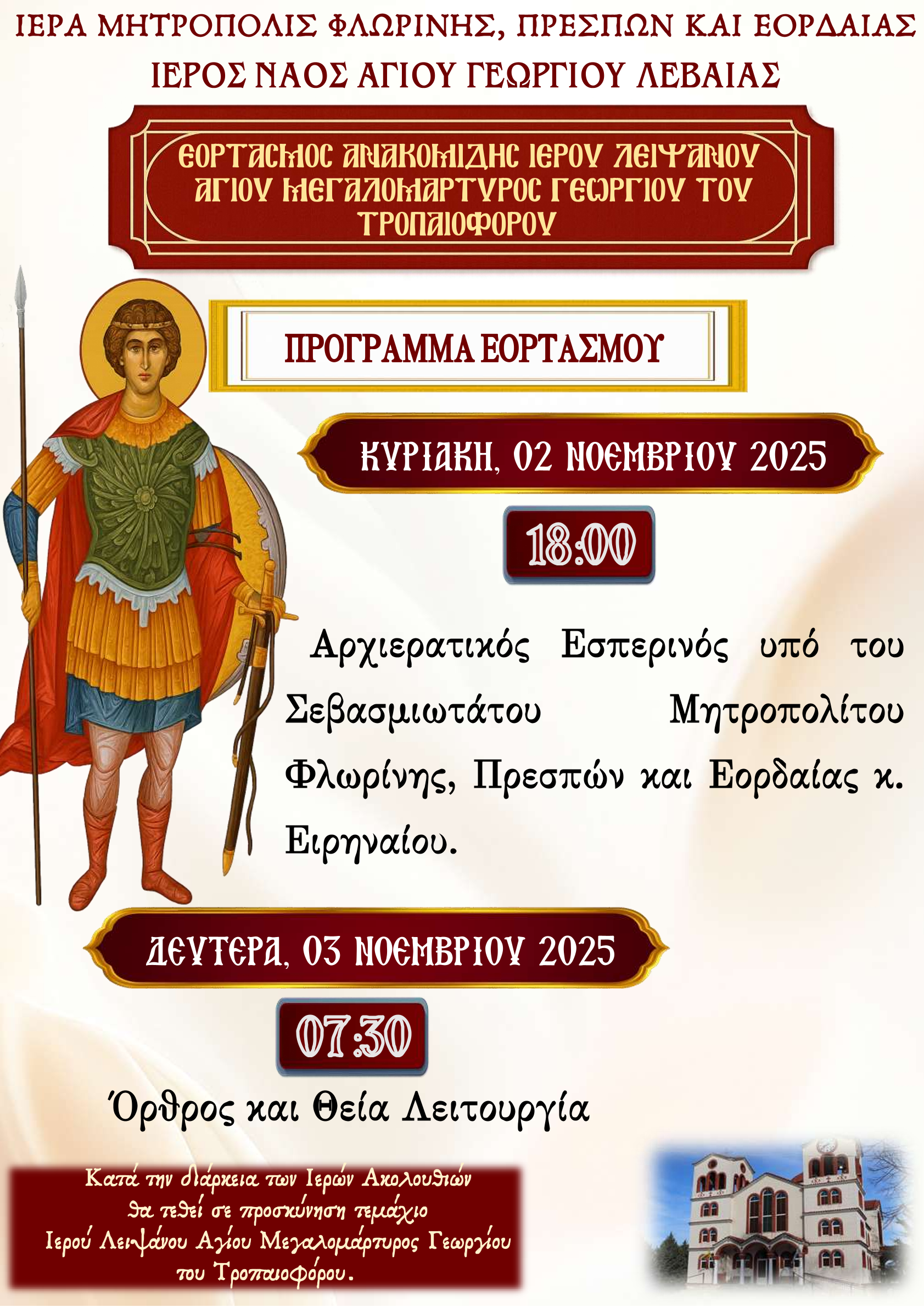 ΚοινωνίαΠανήγυρις Ιερού Ναού Αγίου Γεωργίου Λεβαίας Αμυνταίου Σάββατο 1 Νοεμβρίου, 2025 21:38 florinapress.gr SHARE Ίσως να ενδιαφέρει ... Το νέο ραδιοφωνικό πρόγραμμα Ε.Ρ.Τ. Φλώρινας Αναλυτικά τα δρομολόγια των Κινητών Αστυνομικών Μονάδων για την επόμενη εβδομάδα Ο «Αριστοτέλης» ευχαριστεί τον κ. Ηλία Κανελλόπουλο Ενημερωτική εκδήλωση για τις νέες ποικιλίες αμπέλου και οπωροφόρων δέντρων στο Αμύνταιο ΕΥΧΑΡΙΣΤΗΡΙΟ Share Ακολουθήστε μας8.4kFollowersLikeΤελευταία νέα Αγανακτισμένοι αγρότες : Ως εδώ, η κατάσταση δεν πάει άλλο Κοινωνία Πέμπτη 4 Δεκεμβρίου, 2025 Επισκέψεις Κινητών Μονάδων Υγείας σε απομακρυσμένες Κοινότητες του Δήμου Αμυνταίου Κοινωνία Πέμπτη 4 Δεκεμβρίου, 2025 Ευχαριστήρια επιστολή του Πειραματικού Σχολείου Φλώρινας προς το Κέντρο Περιβαλλοντικής Εκπαίδευσης & Αειφορίας Μελίτης Κοινωνία Πέμπτη 4 Δεκεμβρίου, 2025 Πωλείται Γερμανικός λέβητας ξύλου Κοινωνία Πέμπτη 4 Δεκεμβρίου, 2025