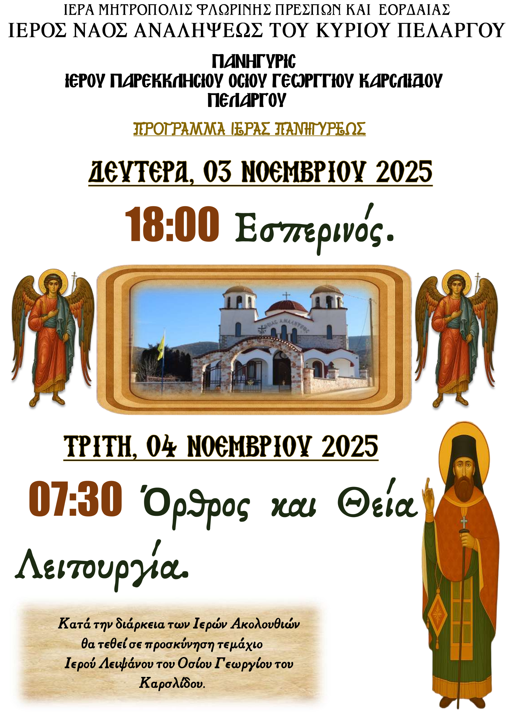 ΚοινωνίαΠανήγυρις Ιερού Παρεκκλησίου Οσίου Γεωργίου Καρσλίδου Πελαργού Αμυνταίου Σάββατο 1 Νοεμβρίου, 2025 21:54 florinapress.gr SHARE Ίσως να ενδιαφέρει ... Συνδρομή σε δασική πυρκαγιά της Λέσχης Ειδικών Δυνάμεων Φλώρινας Ευχαριστήριο του Εσπερινού ΕΠΑΛ Φλώρινας προς τον Δήμο Φλώρινας Ρύθμιση οφειλών προς τον Δήμο Αμυνταίου Ευχαριστήριο της Ιεράς Μητροπόλεως Φλωρίνης Πρεσπών & Εορδαίας Κυριακή ΙΒ’ Ματθαίου Share Ακολουθήστε μας8.4kFollowersLikeΤελευταία νέα Αγανακτισμένοι αγρότες : Ως εδώ, η κατάσταση δεν πάει άλλο Κοινωνία Πέμπτη 4 Δεκεμβρίου, 2025 Επισκέψεις Κινητών Μονάδων Υγείας σε απομακρυσμένες Κοινότητες του Δήμου Αμυνταίου Κοινωνία Πέμπτη 4 Δεκεμβρίου, 2025 Ευχαριστήρια επιστολή του Πειραματικού Σχολείου Φλώρινας προς το Κέντρο Περιβαλλοντικής Εκπαίδευσης & Αειφορίας Μελίτης Κοινωνία Πέμπτη 4 Δεκεμβρίου, 2025 Πωλείται Γερμανικός λέβητας ξύλου Κοινωνία Πέμπτη 4 Δεκεμβρίου, 2025