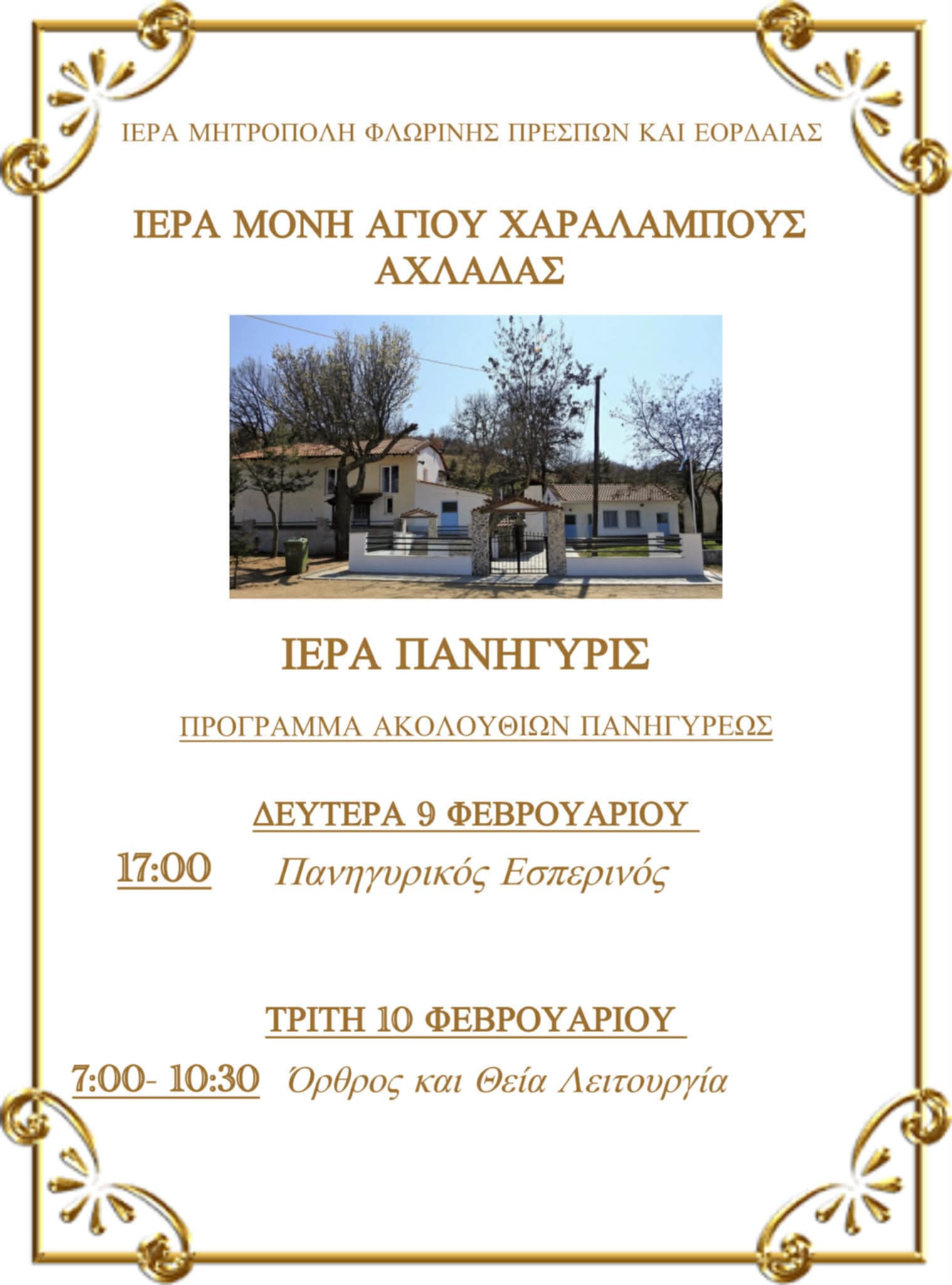 ΚοινωνίαΠανηγυρίζει η Ιερά Μονή Αγίου Χαραλάμπους Αχλάδας Σάββατο 7 Φεβρουαρίου, 2026 13:54 florinapress.gr SHARE Ίσως να ενδιαφέρει ... Ημερίδα με θέμα “Άσκηση, διατροφή, ύπνος και ακαδημαϊκές υποχρεώσεις αθλητών παιδικής και εφηβικής ηλικίας” Οι Λιγνιτικές Μονάδες της ΔΕΗ θωρακίζουν την Ενεργειακή Ασφάλεια της χώρας Συνελήφθη στην Φλώρινα 30χρονος δραπέτης φυλακών Σύλληψη 23χρονου σε περιοχή της Φλώρινας, σε βάρος του οποίου εκκρεμούσε Ευρωπαϊκό Ένταλμα Σύλληψης Οδοντιατρικός Σύλλογος Φλώρινας: Πανδημία Κορωνοϊού (Covid-19) Share Ακολουθήστε μας8.4kFollowersLikeΤελευταία νέα Ανακοίνωση της Πανελλήνιας Ομοσπονδίας Πολιτιστικών Συλλόγων Μακεδόνων για τα 7 χρόνια από την ψήφιση της Συμφωνίας των Πρεσπών Κοινωνία Σάββατο 7 Φεβρουαρίου, 2026 Πραγματοποιήθηκαν ενημερωτικές διαλέξεις με σκοπό τον συντονισμό των ελεγκτικών μηχανισμών, για την αντιμετώπιση της ευλογιάς των αιγοπροβάτων Κοινωνία Σάββατο 7 Φεβρουαρίου, 2026 Συγχαρητήριο μήνυμα του Δημάρχου Φλώρινας προς το Εσπερινό ΕΠΑΛ Φλώρινας Κοινωνία Σάββατο 7 Φεβρουαρίου, 2026 Στις επιλογές της Εθνικής Κ14 οι Γιώσης και Σολάκης του ΠΑΣ Φλώρινα Αθλητισμός Σάββατο 7 Φεβρουαρίου, 2026
