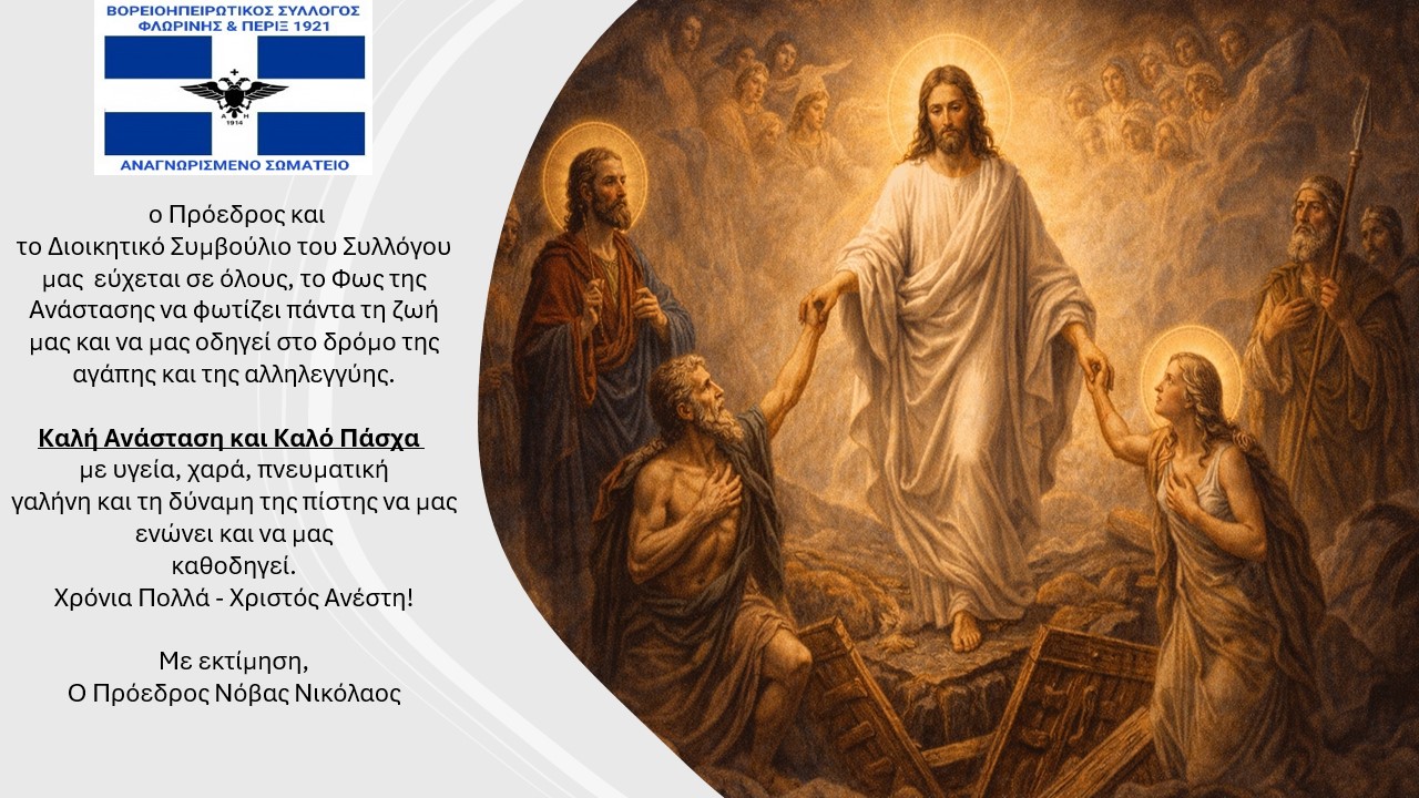 ΚοινωνίαΠασχαλινές ευχές του Βορειοηπειρωτικού Συλλόγου Φλώρινας Σάββατο 11 Απριλίου, 2026 11:20 florinapress.gr SHARE Ίσως να ενδιαφέρει ... Η 31η ειδική συνεδρίαση του Δημοτικού Συμβουλίου Αμυνταίου Σύλληψη 36χρονου αλλοδαπού στη Φλώρινα, διότι εκκρεμούσε σε βάρος του Διεθνές Ένταλμα Σύλληψης Παρουσίαση των υποψηφίων της Λαϊκής Συσπείρωσης για τον Δήμο και την Π.Ε. Φλώρινας Κηδεία της Ευαγγελίας Μαύρου, ετών 94 Βιβλιοπαρουσίαση: Η συμβολή της διατροφής στην υγεία των ανθρώπων Share Ακολουθήστε μας8.4kFollowersLikeΤελευταία νέα Εγκύκλιος Κυριακής Πάσχα του Σεβασμιωτάτου Μητροπολίτου Φλωρίνης, Πρεσπών και Εορδαίας κ. Ειρηναίου Κοινωνία Σάββατο 11 Απριλίου, 2026 Κηδεία του Δημητρίου Σταυρίδη, ετών 85 Κοινωνικά Σάββατο 11 Απριλίου, 2026 Η περιφορά του Επιταφίου στη Μελίτη Κοινωνία Σάββατο 11 Απριλίου, 2026 Κηδεία του Σωτηρίου Γρηγοριάδη, ετών 80 Κοινωνικά Σάββατο 11 Απριλίου, 2026