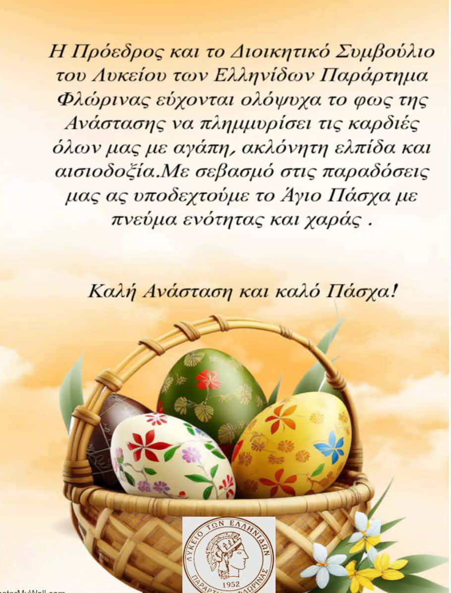 ΚοινωνίαΠολιτισμόςΠασχαλινές ευχές του Λυκείου Ελληνίδων Φλώρινας Πέμπτη 9 Απριλίου, 2026 22:23 florinapress.gr SHARE Ίσως να ενδιαφέρει ... Η μουσική εκδήλωση της Μητρόπολης Φλώρινας για τον εορτασμό της Υπαπαντής του Κυρίου Αναβίωσε το έθιμο των φωτιών στον Δήμο Φλώρινας Συνελήφθη 39χρονος αλλοδαπός, σε περιοχή της Φλώρινας, διότι εκκρεμούσε σε βάρος του Ένταλμα Σύλληψης Συμμετοχή της παιδικής χορωδίας του ΦΣΦΑ “ΔΗΜΗΤΡΙΟΣ ΛΙΩΤΣΗΣ”στο 7ο Χορωδιακό Φεστιβάλ Δήμου Πύδνας – Κολινδρού Πιερίας Ο «Αριστοτέλης» στηρίζει την εκδήλωση «Ένα σχολείο για τον Μπαρίκι» Share Ακολουθήστε μας8.4kFollowersLikeΤελευταία νέα Σταύρος Παπασωτηρίου: Ανακοινώσεις – διεκδικήσεις εμβληματικού χαρακτήρα Πολιτική Πέμπτη 9 Απριλίου, 2026 Πασχαλινές ευχές του Αντιπροέδρου του Δημοτικού Συμβουλίου Αμυνταίου Γεωργίου Τσιρώνη Κοινωνία Πέμπτη 9 Απριλίου, 2026 Πασχαλινές ευχές της ΕΠΣ Φλώρινας Αθλητισμός Πέμπτη 9 Απριλίου, 2026 Μήνυμα του Βουλευτή Π.Ε. Φλώρινας Σταύρου Παπασωτηρίου για το Άγιο Πάσχα Κοινωνία Πολιτική Πέμπτη 9 Απριλίου, 2026
