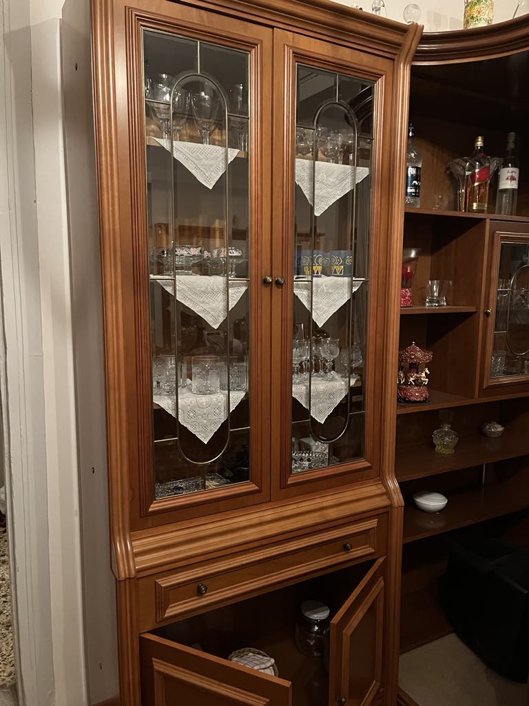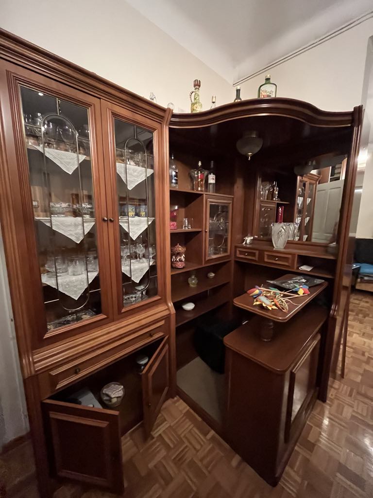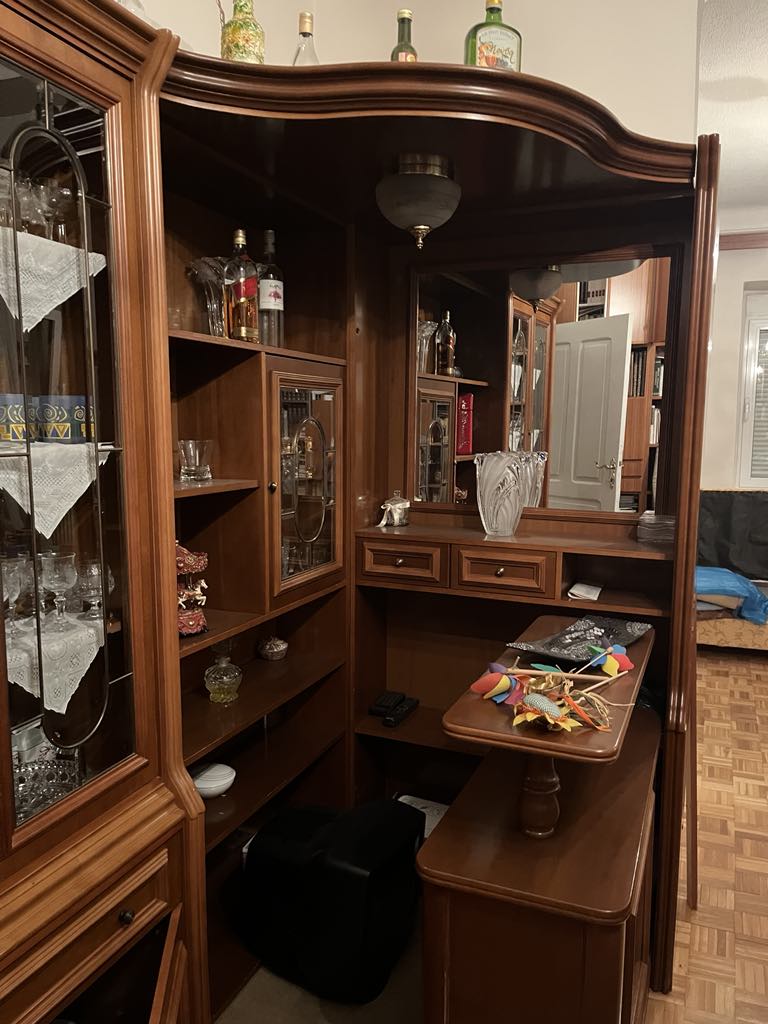 Σύνθετο γωνιακό έπιπλο σαλονιού με διαστάσεις 125 x 215 και ύψος 210 σε χρώμα καρυδιάς εξαιρετικής ποιότητας.