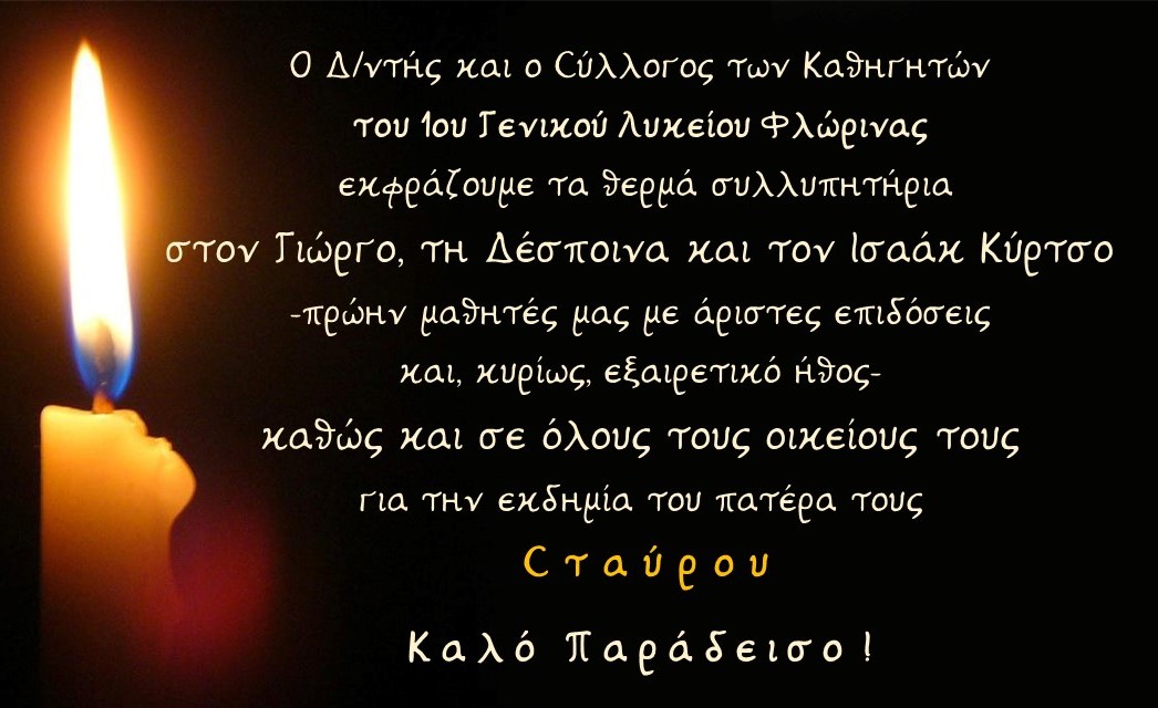 ΚοινωνίαΣυλλυπητήριο του 1ου ΓΕΛ Φλώρινας Τρίτη 7 Απριλίου, 2026 20:57 florinapress.gr SHARE Ίσως να ενδιαφέρει ... Κοπή βασιλόπιτας της Λέσχης Ειδικών Δυνάμεων Φλώρινας Πρόγραμμα εορτασμού της 110ης επετείου των ελευθερίων της κοινότητας Βεύης του Δήμου Φλώρινας στις 7 Νοεμβρίου 1912 Πέτη Πέρκα: «Από το 2019 έως το 2023 το έργο της τηλεδιοίκησης/σηματοδότησης προχώρησε μόλις κατά 5%» (video) Ενοικιάζονται διαμερίσματα στη Φλώρινα Ενεργειακή κρίση: οι έκτακτες καταστάσεις απαιτούν έκτακτες λύσεις! Share Ακολουθήστε μας8.4kFollowersLikeΤελευταία νέα Ξεκίνησαν οι κοινές πασχαλινές επισκέψεις του Αντιπεριφερειάρχη και του Δημάρχου Φλώρινας Πολιτική Πολιτισμός Τρίτη 7 Απριλίου, 2026 Στ. Παπασωτηρίου: Ενίσχυση του Νοσοκομείου Φλώρινας με επικουρικούς ιατρούς Πολιτική Τρίτη 7 Απριλίου, 2026 «Φυσικό Αέριο Δυτικής Μακεδονίας» Με απόλυτη επιτυχία και πλήθος κόσμου το grand opening του νέου καταστήματος στην Καστοριά Κοινωνία Τρίτη 7 Απριλίου, 2026 Ευχαριστήριο του Κ.Κ.Π.Π.Δ.Μ σε Περιφερειακή Ενότητα Φλώρινας και Δήμο Φλώρινας Κοινωνία Τρίτη 7 Απριλίου, 2026