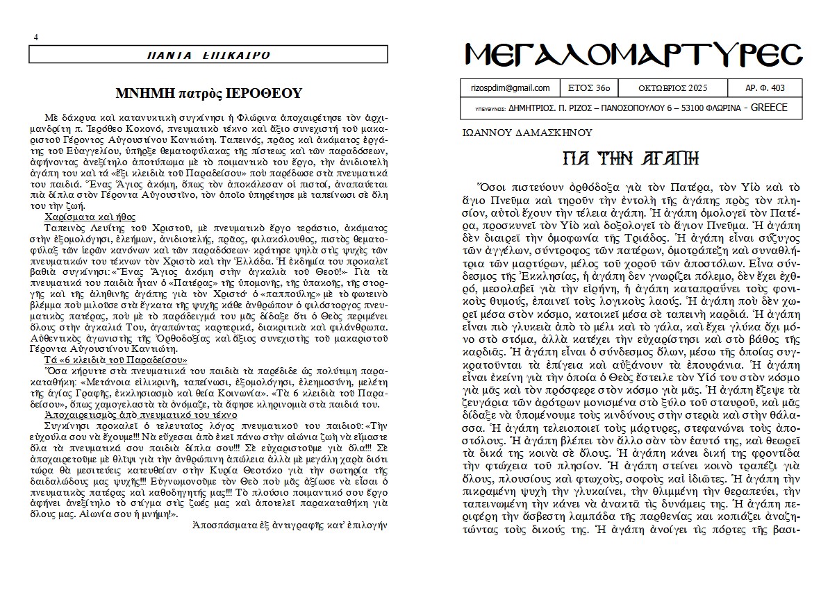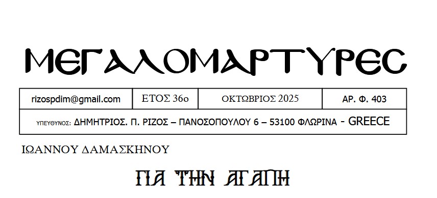 ΚοινωνίαΤο περιοδικό “Μεγαλομάρτυρες” του Δημητρίου Ρίζου (Οκτώβριος 2025) Σάββατο 4 Οκτωβρίου, 2025 21:55 florinapress.gr SHARE Ίσως να ενδιαφέρει ... Ο «Αριστοτέλης» τίμησε τη μνήμη των 15 απαγχονισθέντων Ελλήνων της Κλαδοράχης Συλλυπητήριο μήνυμα της ΔΕΕΠ Ν.Δ. Φλώρινας Διακοπή ηλεκτροδότησης σε τοπικές κοινότητες του Δήμου Φλώρινας Το σωματείο καθαριστριών και καθαριστών νομού Φλώρινας συμμετέχει στο Πανφλωρινιώτικο συλλαλητήριο Γιάννης Αντωνιάδης: Άλλος ένας συμπολίτης μας χάθηκε στο Αμύνταιο λόγω έλλειψης οδηγού ασθενοφόρου Share Ακολουθήστε μας8.4kFollowersLikeΤελευταία νέα Την Τετάρτη 10 Δεκεμβρίου η φωταγώγηση του Χριστουγεννιάτικου Δέντρου στην κεντρική πλατεία της Φλώρινας Εκδηλώσεις Πολιτισμός Παρασκευή 5 Δεκεμβρίου, 2025 Χριστουγεννιάτικη συναυλία της Φιλαρμονικής Δήμου Φλώρινας Εκδηλώσεις Πολιτισμός Παρασκευή 5 Δεκεμβρίου, 2025 Η νέα σύνθεση της Δημοτικής Τοπικής Οργάνωσης (ΔΗΜΤΟ) Νέας Δημοκρατίας Αμυνταίου Πολιτική Παρασκευή 5 Δεκεμβρίου, 2025 Μήνυμα του Δημάρχου Φλώρινας για την Παγκόσμια Ημέρα Εθελοντισμού Κοινωνία Πολιτική Παρασκευή 5 Δεκεμβρίου, 2025