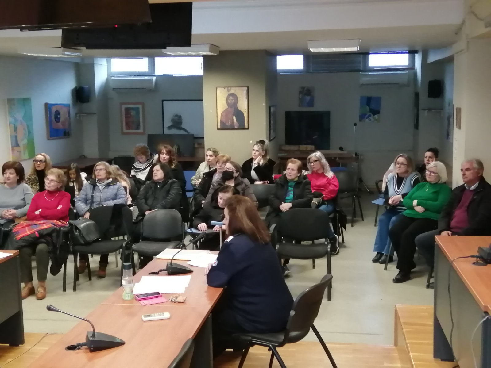 Την ανάλυση του θέματος έκαναν οι Μαίες του Κέντρου Υγείας Φλώρινας, κα. Κολλάρη Θάλεια και κ. Σαγώνα Ελένη, (μέλη του Δικτύου Μαιών-τών της 3ης Υγειονομικής Περιφέρειας), οι οποίες με την εμπεριστατωμένη παρουσίασή τους κράτησαν ζωντανό το ενδιαφέρον του ακροατηρίου ενώ οι εισηγήσεις τους συνοδεύτηκαν από γόνιμη συζήτηση. Διευκρινίστηκαν τα ηλικιακά όρια γυναικών για κάθε κατηγορία ειδικών προληπτικών Δωρεάν εξετάσεων που περιλαμβάνει το Πρόγραμμα και αναλύθηκε διεξοδικά η προληπτική αξία της μαστογραφίας, του κλασσικού Test-Pap και του ειδικότερου HPV-DNA Test που εφαρμόζεται πλέον για την εγκαιρότερη πρόληψη καρκίνου τραχήλου μήτρας. Παράλληλα έγινε πλήρης παρουσίαση των Δομών της ευρύτερης περιοχής στις οποίες μπορούν να απευθύνονται για δωρεάν εξυπηρέτηση οι γυναίκες του Νομού Φλώρινας.