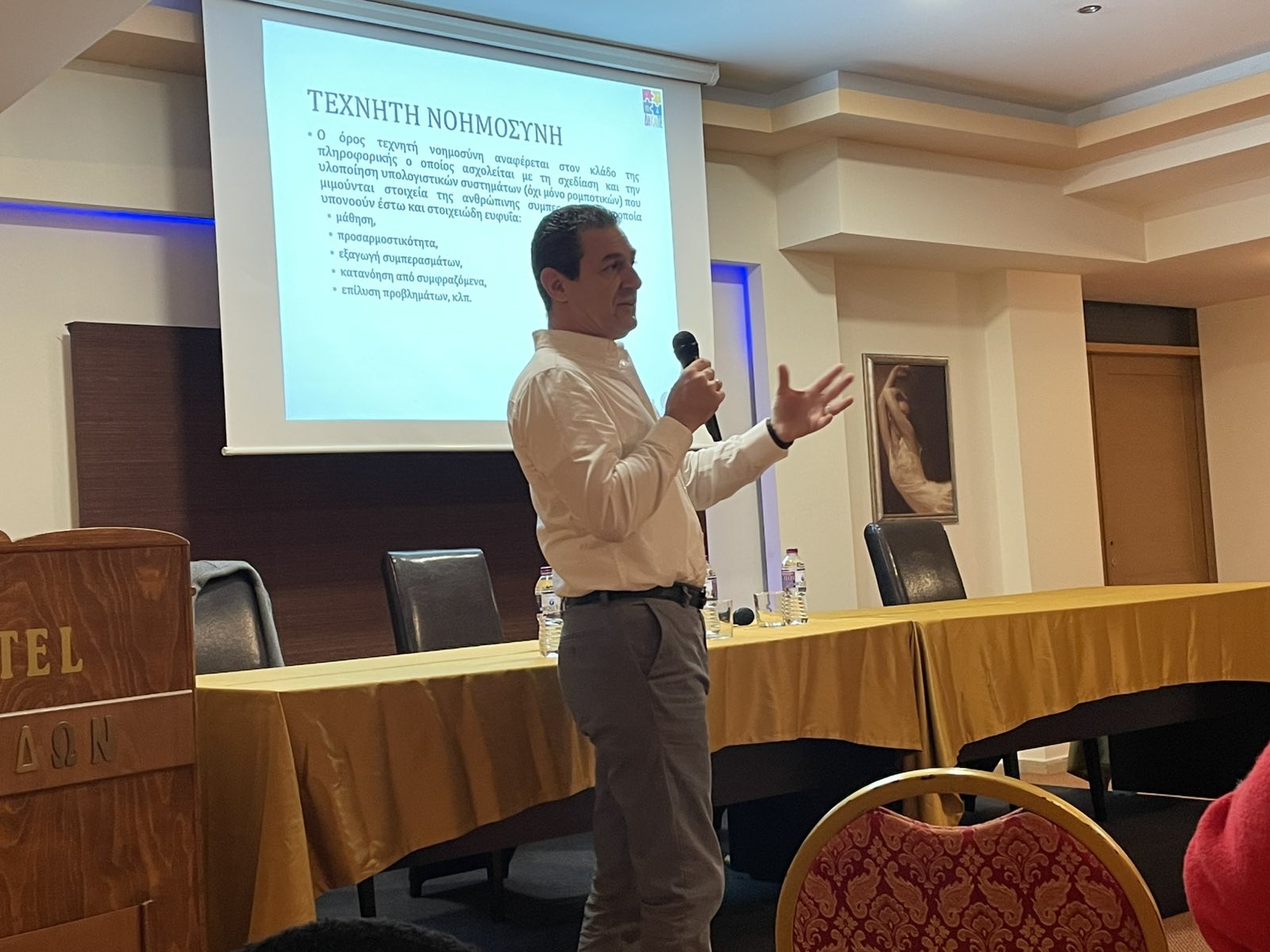 Τη θεματική ανέπτυξε ως εισηγητής ο κ. ΘαρρενόςΜπράτιστης, Καθηγητής της Σχολής Κοινωνικών και Ανθρωπιστικών Επιστημών του Πανεπιστημίου Δυτικής Μακεδονίας, ο οποίος συνέβαλε καθοριστικά στο να αποσαφηνιστούν βασικές έννοιες, να φωτιστούν πραγματικά παραδείγματα και να τεθούν οι σωστές ερωτήσεις: πού ακριβώς συναντούν τα παιδιά την ΤΝ, ποια είναι τα οφέλη, ποιες είναι οι παγίδες, και τι σημαίνει πρακτικά «ασφαλής και υπεύθυνη χρήση».