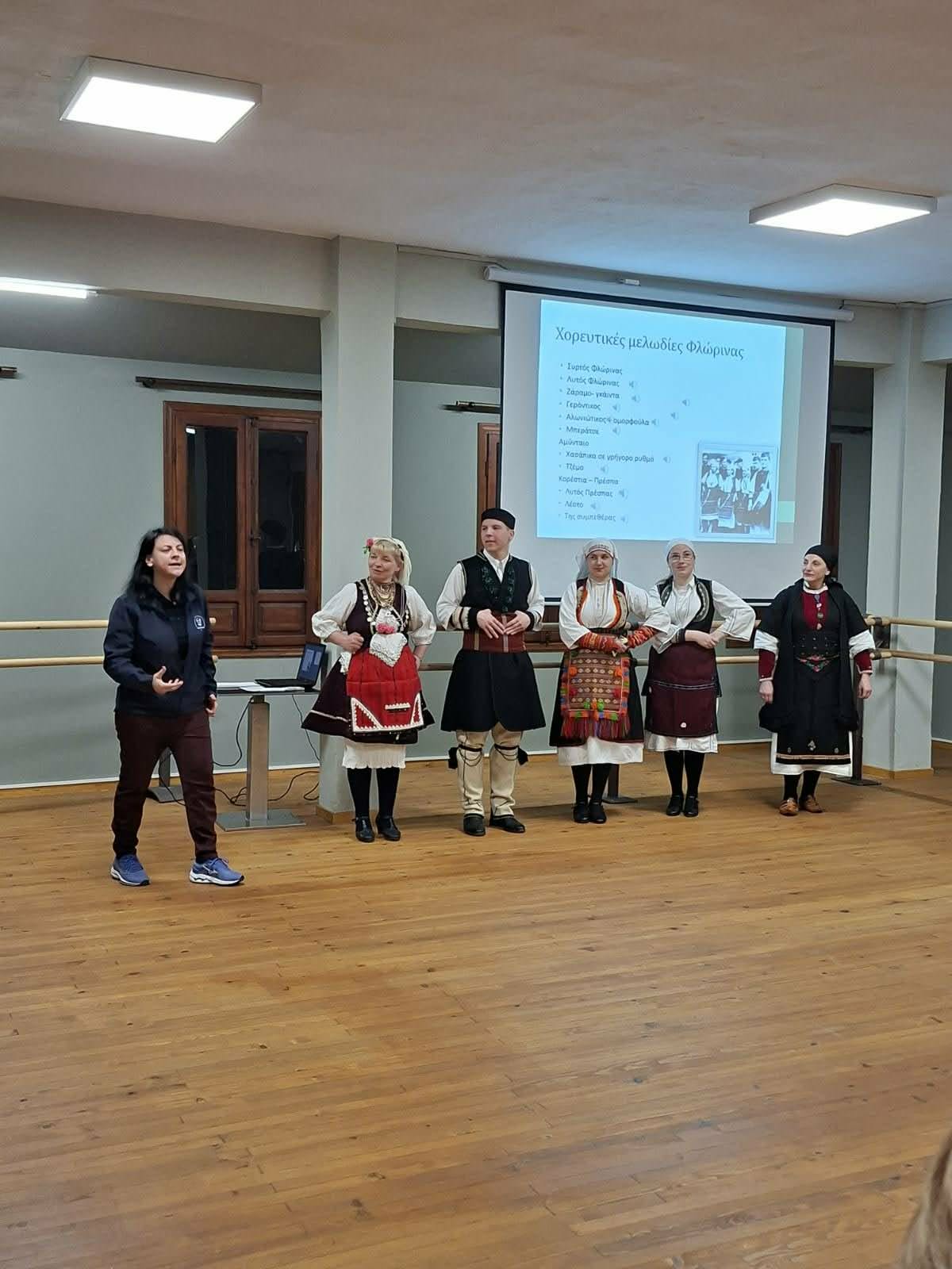 Ακολούθησε σεμινάριο παραδοσιακών χορών της Φλώρινας και παρουσίαση τοπικών  φορεσιών από την χοροδιδάσκαλο του τμήματος Τρύφωνος Ελευθερία.