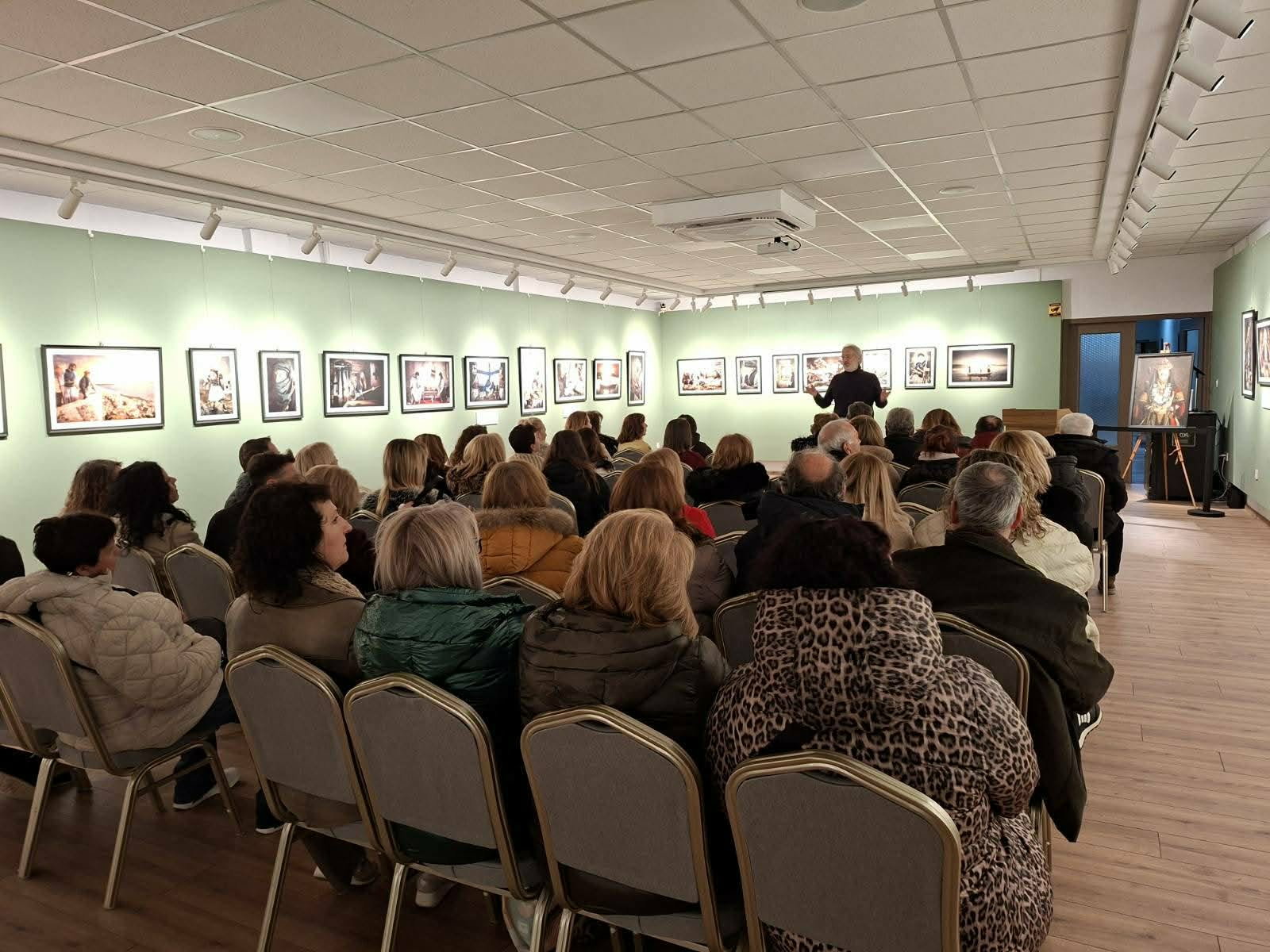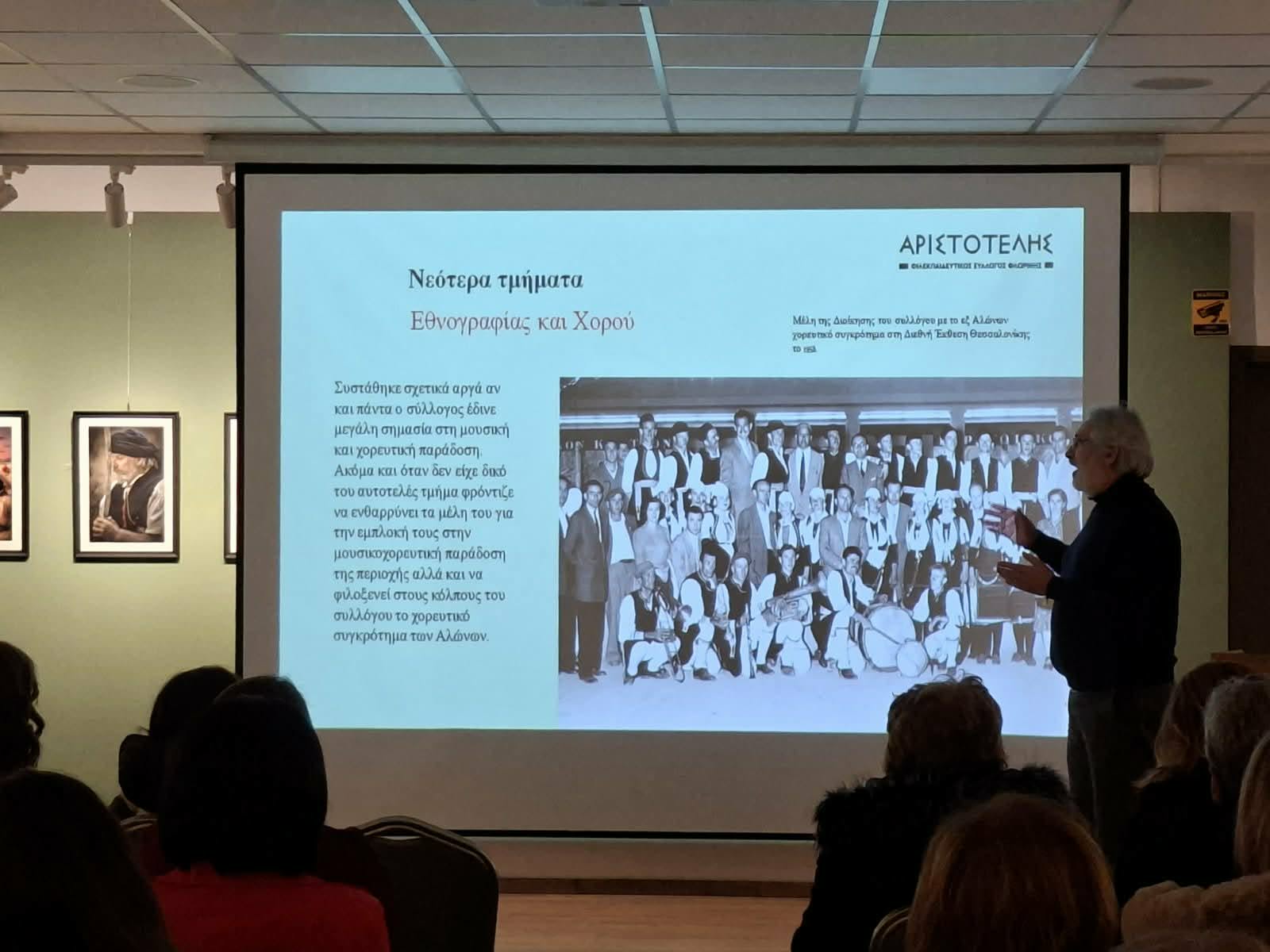 Αρχικά οι φιλοξενούμενοι ενημερώθηκαν για την ιστορία του συλλόγου και περιηγήθηκαν στην επετειακή φωτογραφική έκθεση στην πινακοθήκη  από τον κ. Σπύρο Παπαχαρίση.