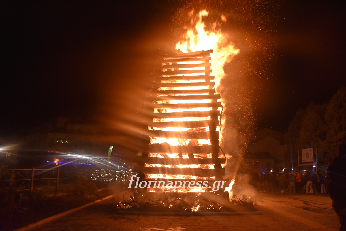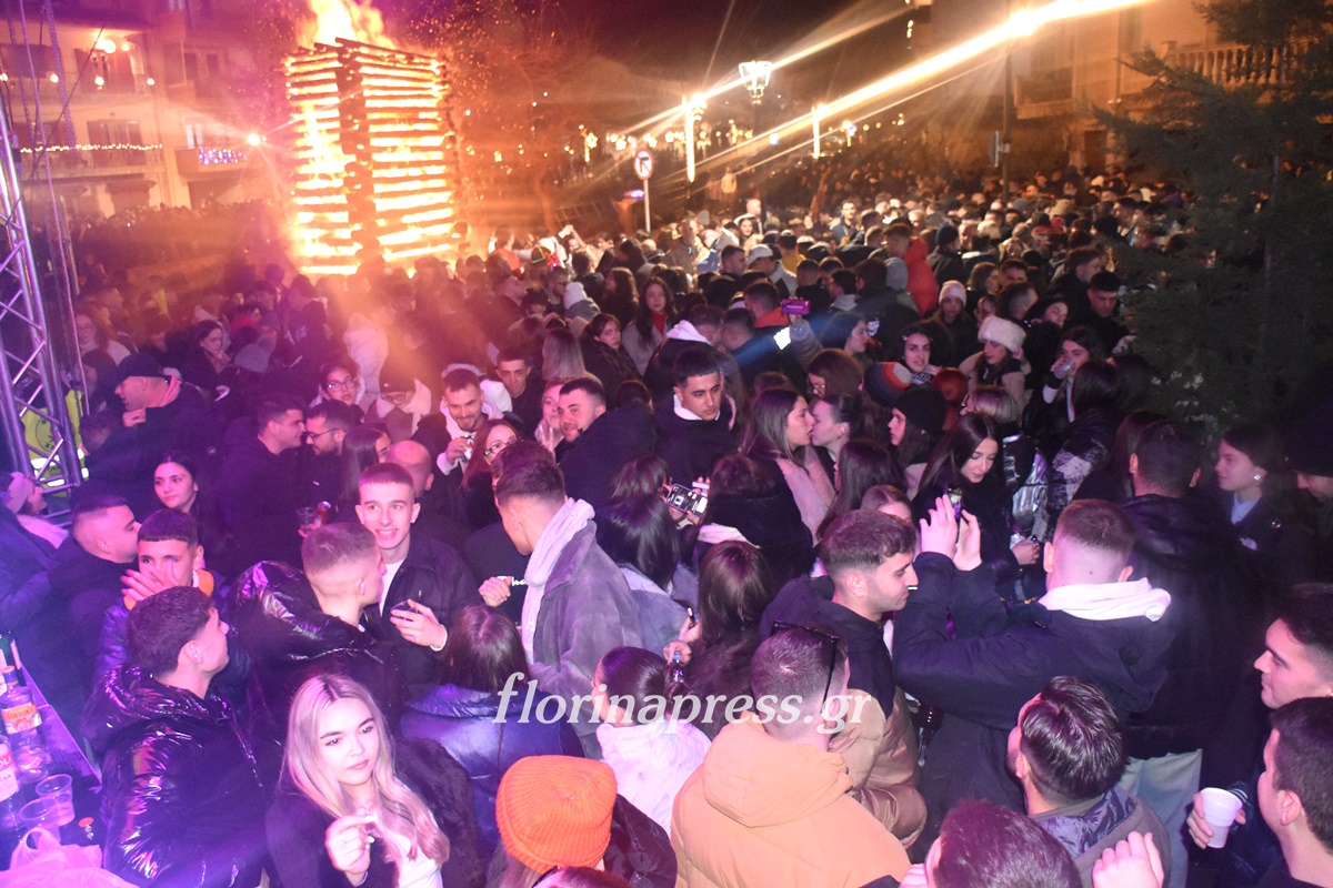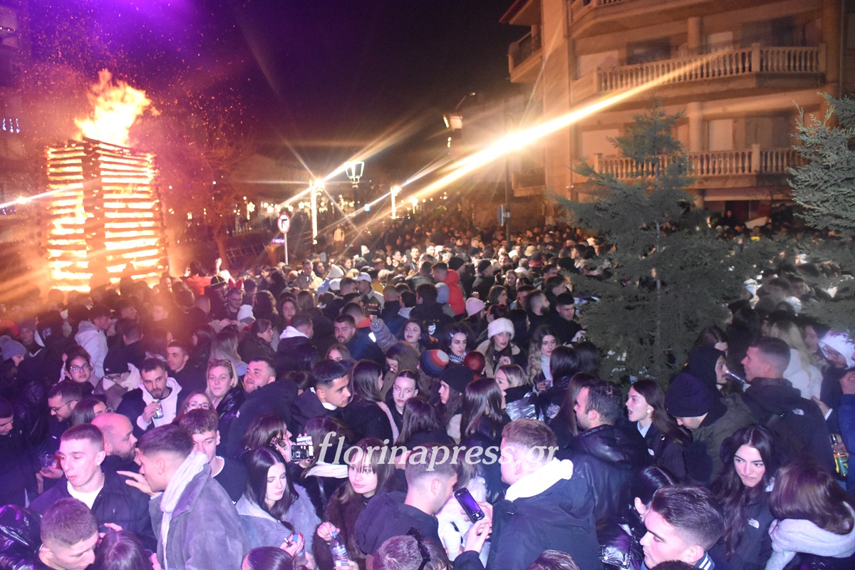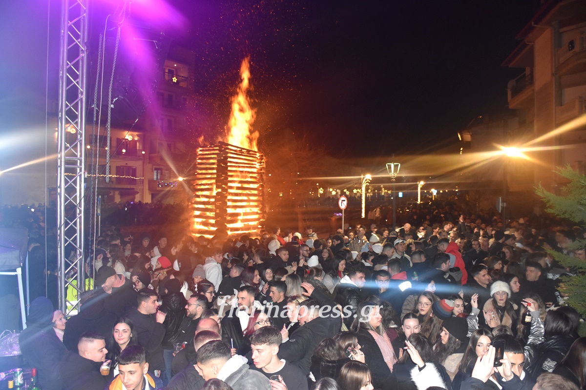 Το  βράδυ, στην κεντρική πλατεία Γ. Μόδη μοιράστηκε παραδοσιακή φασολάδα και κρασί, ενώ τα μεσάνυχτα ακριβώς άναψαν όλες οι φωτιές και το γλέντι κορυφώθηκε υπό τους ήχους χάλκινων, και όχι μόνο, με το γλέντι να κρατά ξάγρυπνη την πόλη μέχρι τις πρώτες πρωινές ώρες.