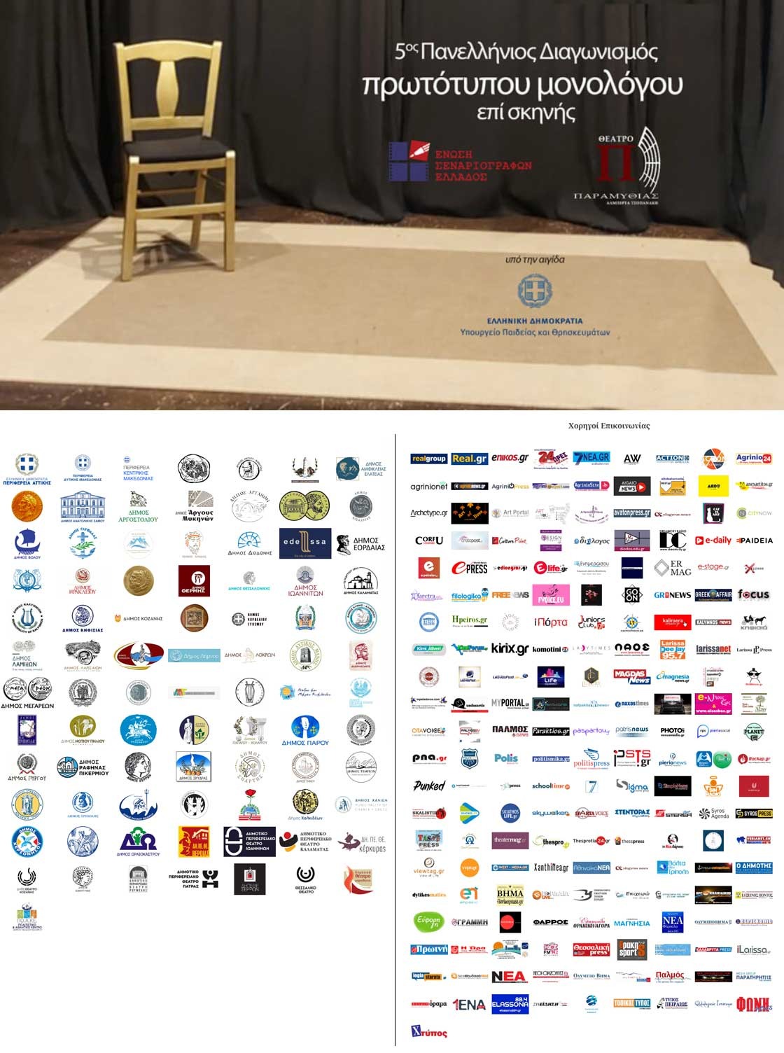 Η Ένωση Σεναριογράφων Ελλάδος, ως γνωστόν, καθιέρωσε τον Πανελλήνιο Διαγωνισμό Συγγραφής και Ερμηνείας Πρωτότυπων Μονολόγων (15′) επί Σκηνής ως ετήσια πανελλήνια πολιτιστική εκδήλωση εξ ου και προκηρύσσει τον πέμπτο (5ο) προσκαλώντας τους θιασώτες του ιδιαίτερου αυτού θεατρικού είδους, από όλη την Επικράτεια αλλά και το εξωτερικό, να προσέλθουν και να παρουσιάσουν το έργο τους στον 5ο Πανελλήνιο Διαγωνισμό Συγγραφής και Ερμηνείας Πρωτότυπων Μονολόγων επί Σκηνής.