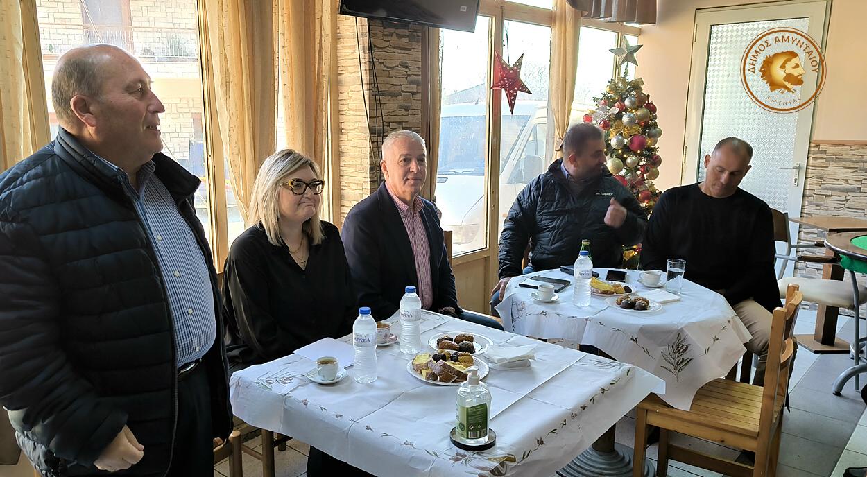 Τον Δήμαρχο Αμυνταίου συνόδευσε η Αντιδήμαρχος Διοικητικών Θεμάτων, Κοινωνικής Πολιτικής και Προσχολικής Αγωγής Ευδοξία Ζαφειρίδου κι ο Αντιδήμαρχος χωρικός στις Δ.Ε. Αετού, Βαρικού, Λεχόβου και Νυμφαίου, Παύλος Σαρηγιαννίδης, ενώ στο ΚΑΠΗ τους υποδέχθηκε ο Πρόεδρος της Δημοτικής Κοινότητας Αετού Κωνσταντίνος Γκιουλέκας και ο Πρόεδρος του ΚΑΠΗ Αετού Νίκος Λυπίτκας.
