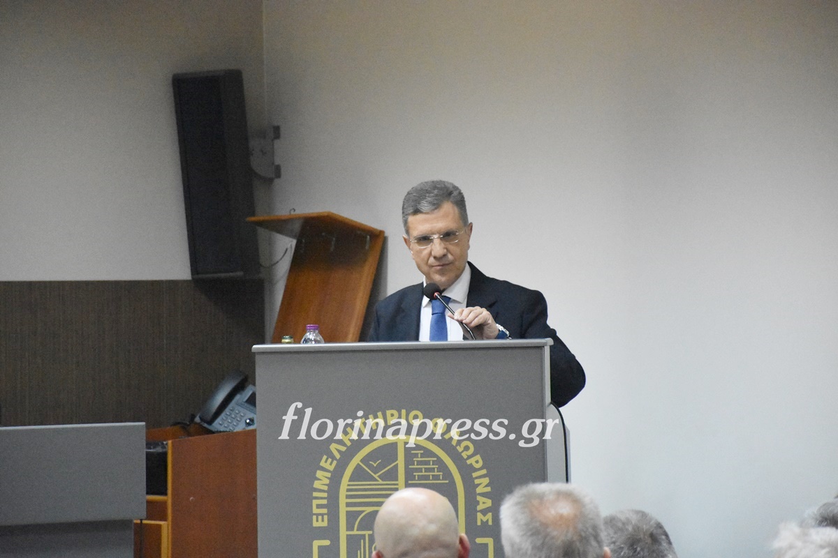 Σας καλωσορίζω θερμά στη σημερινή μας εκδήλωση και σας ευχαριστώ για την παρουσία σας. Στο σημείο αυτό θα μου επιτρέψετε να εκφράσω θερμές ευχαριστίες στο Εμπορικό Επιμελητήριο Φλώρινας και στην Πρόεδρο του κυρία Βαλίνα Ρόζα για την αγαστή συνεργασία και παραχώρηση της αίθουσας, προκειμένου να πραγματοποιηθεί αυτή μας η συνάντηση.