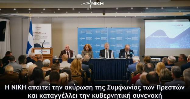 Ο κ. Νατσιός κατήγγειλε την κυβέρνηση και τον πρωθυπουργό Κυρ. Μητσοτάκη, ως ενσυνείδητο συνεχιστή της προδοσίας της κυβέρνησης Τσίπρα, γεγονός που αποδεικνύει η άρνησή του να φέρει προς συζήτηση την Πρόταση Νόμου που κατέθεσε η ΝΙΚΗ στη Διαρκή Επιτροπή Εθνικής Άμυνας και Εξωτερικών Υποθέσεων της Βουλής, συνοδευόμενη από «Αιτιολογική Έκθεση» και πλήρη «Κατάλογο των Ουσιωδών Παραβιάσεων της Συμφωνίας των Πρεσπών», από την πλευρά των Σκοπίων.
