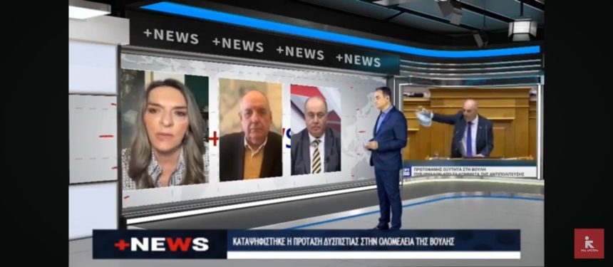 Έπειτα, σχολίασε τη συνεργασία των κομμάτων της Αντιπολίτευσης για την κατάθεση της πρότασης δυσπιστίας, παρατηρώντας ότι επειδή ακριβώς δεν υπάρχει ισχυρή Αξιωματική Αντιπολίτευση, πλέον θα είναι αναγκαίο να γίνονται τέτοιες πολιτικές συνεννοήσεις: «Εμείς είμαστε πολύ θετικοί να προχωράμε σε πολιτική συνεννόηση για επιμέρους θέματα. Δεν γίνεται αλλιώς. Ήταν η πρώτη φορά».