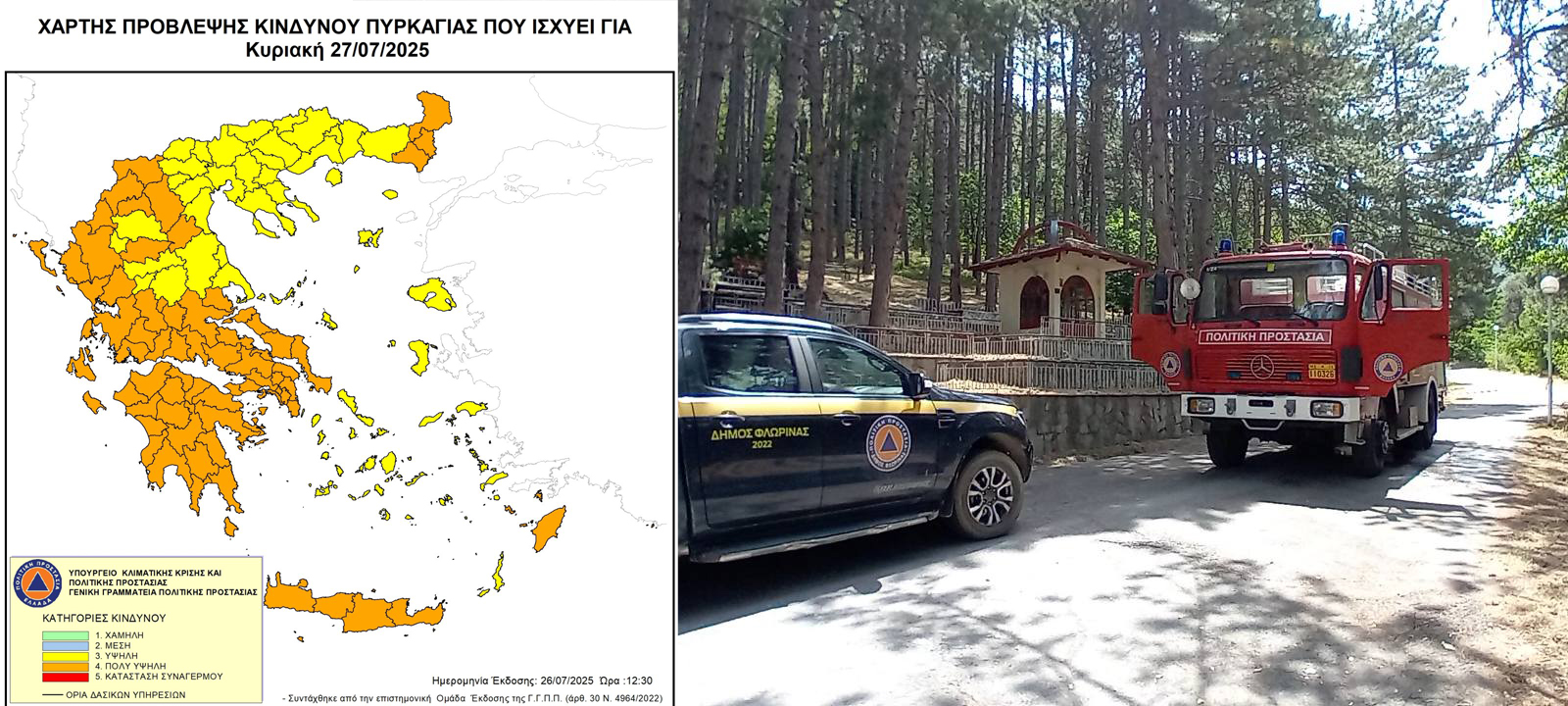 Το μόνιμο και εποχικό προσωπικό του αυτοτελούς τμήματος Πολιτικής Προστασίας και μέλη της εθελοντικής ομάδας της Λέσχης Ειδικών Δυνάμεων Φλώρινας σε συνεργασία με την Πυροσβεστική Υπηρεσία, πραγματοποίησαν πεζές και αυτοκινούμενες περιπολίες στο περιαστικό δάσος του λόφου του Αγίου Παντελεήμονα (πυροσβεστικό όχημα του Δήμου) της Φλώρινας, αποτρέποντας σε περιπατητές και επισκέπτες την διέλευση, παραμονή και κυκλοφορία τους εντός των προαναφερόμενων δασικών εκτάσεων.