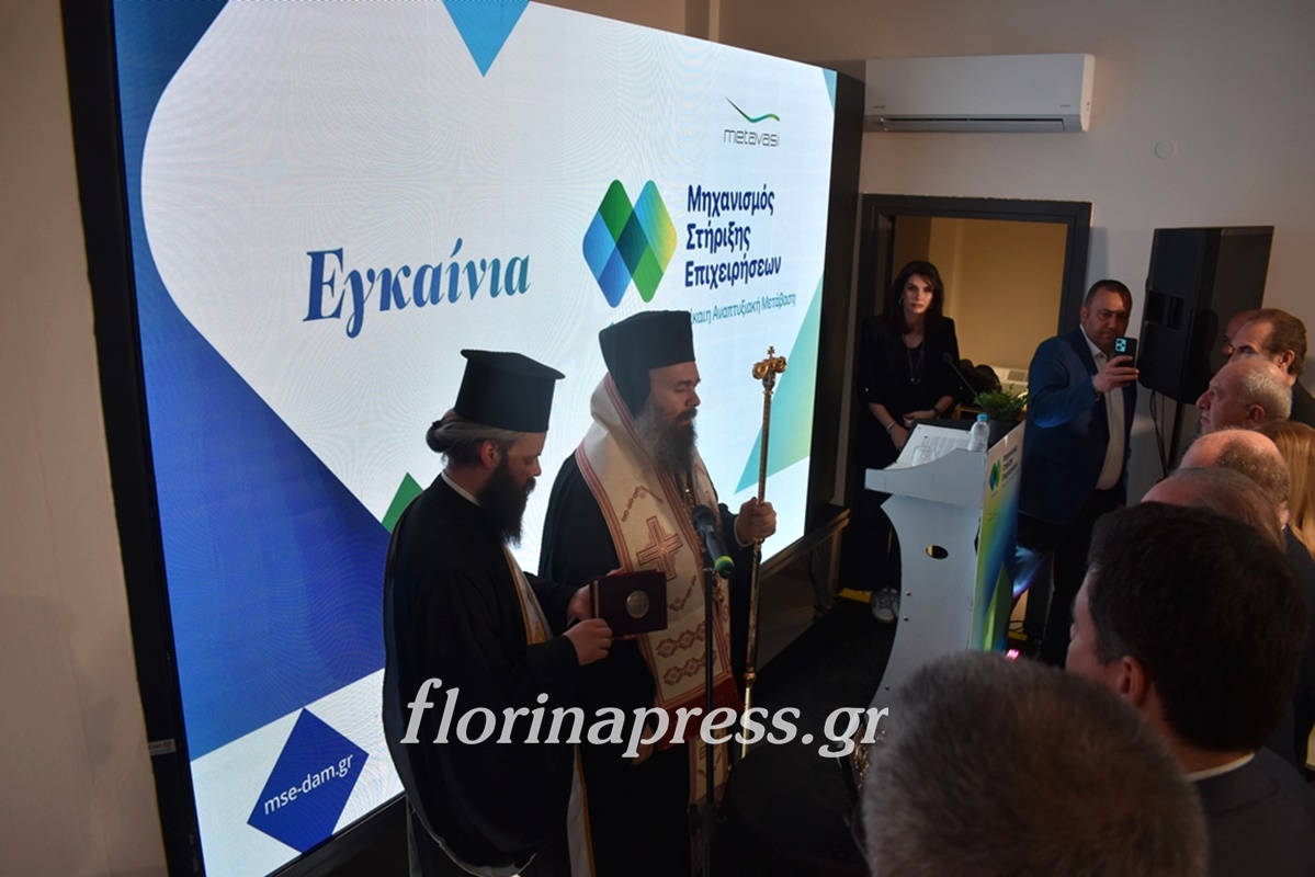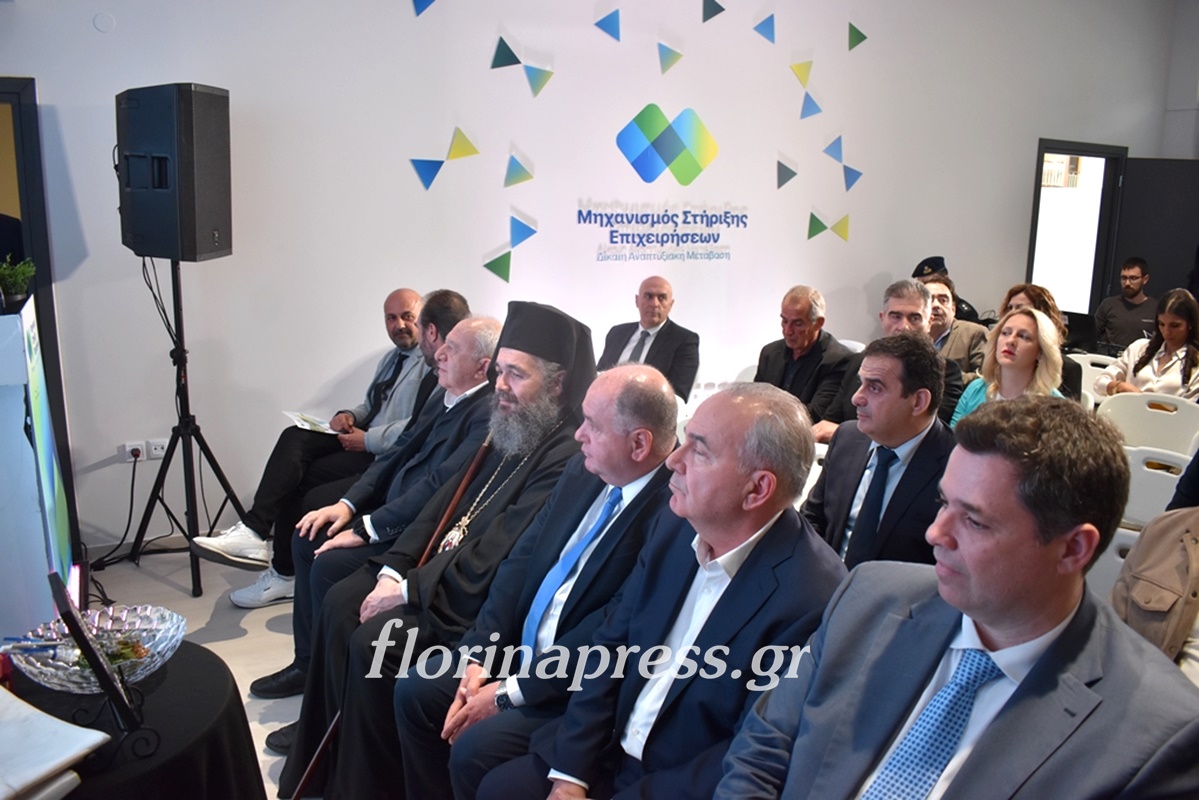 Τα εγκαίνια τέλεσε ο Μητροπολίτης Φλωρίνης, Πρεσπών και Εορδαίας κ. Ειρηναίος, ενώ την εκδήλωση χαιρέτησαν η Διευθύνουσα Σύμβουλος της Ελληνικής Εταιρείας Δίκαιης Αναπτυξιακής Μετάβασης Δέσποινα Γκαράνη, ο Υφυπουργός στον Πρωθυπουργό Θανάσης Κοντογεώργης, ο Αναπληρωτής Υπουργός Εθνικής Οικονομίας & Οικονομικών Νίκος Παπαθανάσης, ο Υφυπουργός Υποδομών και Μεταφορών Νίκος Ταχιάος, ο Διοικητής της Ειδικής Υπηρεσίας Δίκαιης Αναπτυξιακής Μετάβασης Πελοπίδας Καλλίρης, ο δήμαρχος Φλώρινας Βασίλης Γιαννάκης, ο βουλευτής Φλώρινας Σταύρος Παπασωτηρίου και ο αντιπεριφερειάρχης Φλώρινας Αθανάσιος Τάσκας, ενώ η αναπληρώτρια υπεύθυνη έργου Αναστασία Ζαχαράκη παρουσίασε συνοπτικά τον Μηχανισμό Στήριξης Επιχειρήσεων.