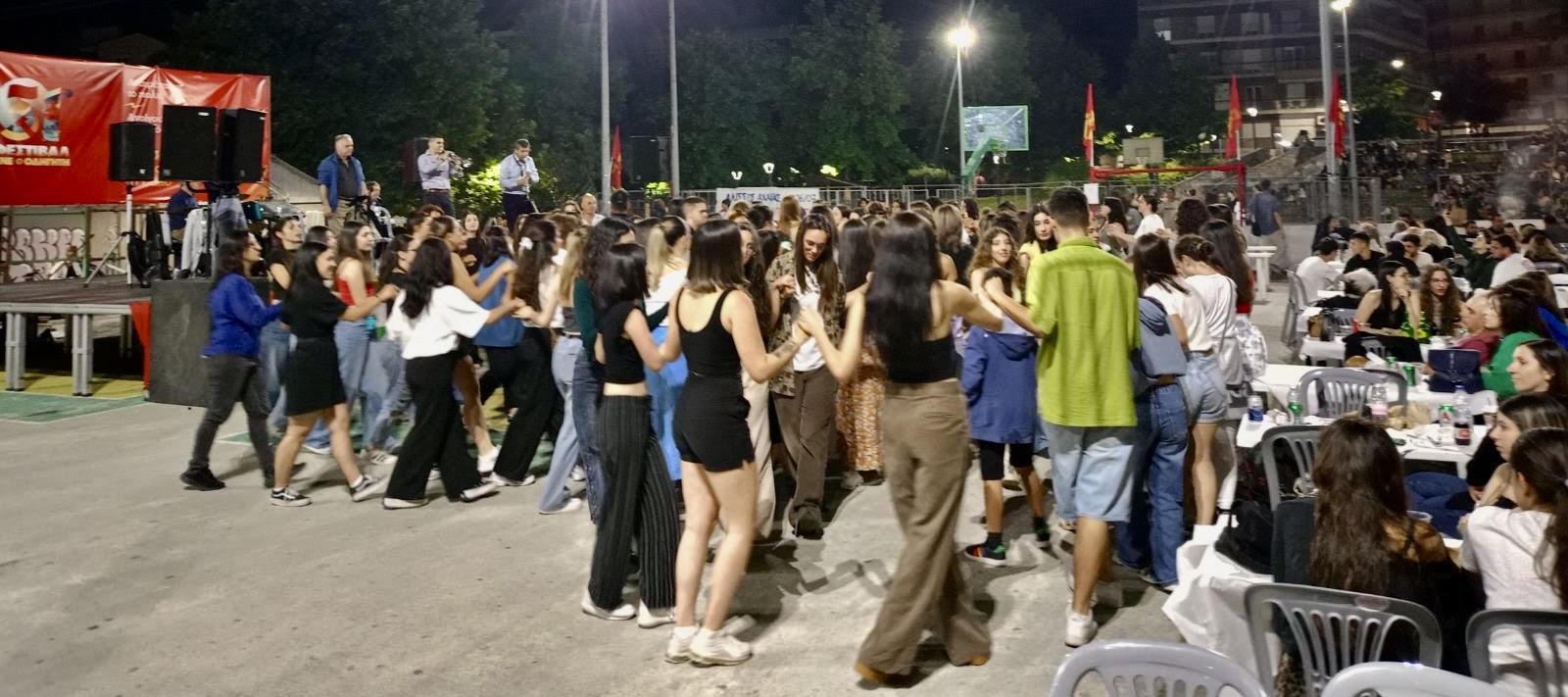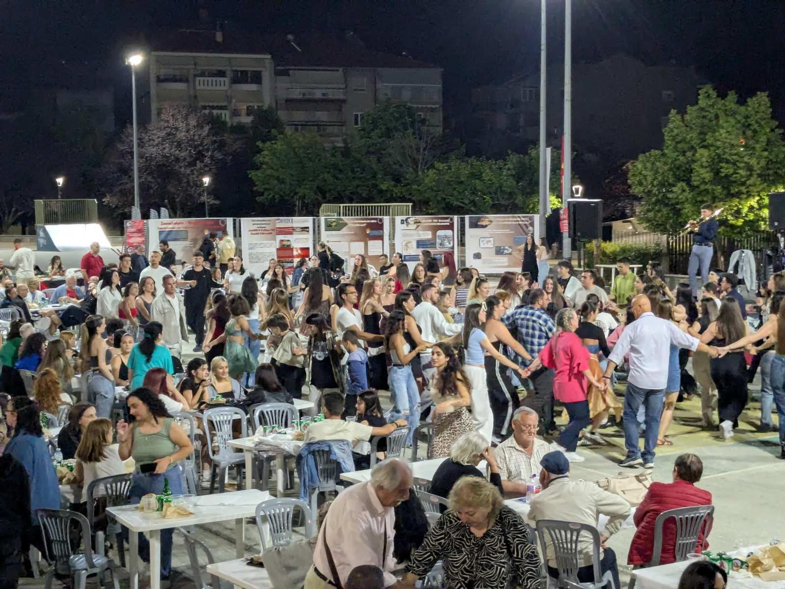 Η βραδιά κορυφώθηκε με ξεφαντωτικό παραδοσιακό γλέντι από την Μπάντα της Φλώρινας των αδελφών Βαλκάνη, στο οποίο μικροί και μεγάλοι χόρεψαν με κέφι και ενθουσιασμό για ώρες μέχρι να κλείσουν τα κεντρικά φώτα του Νέου Πάρκου.
