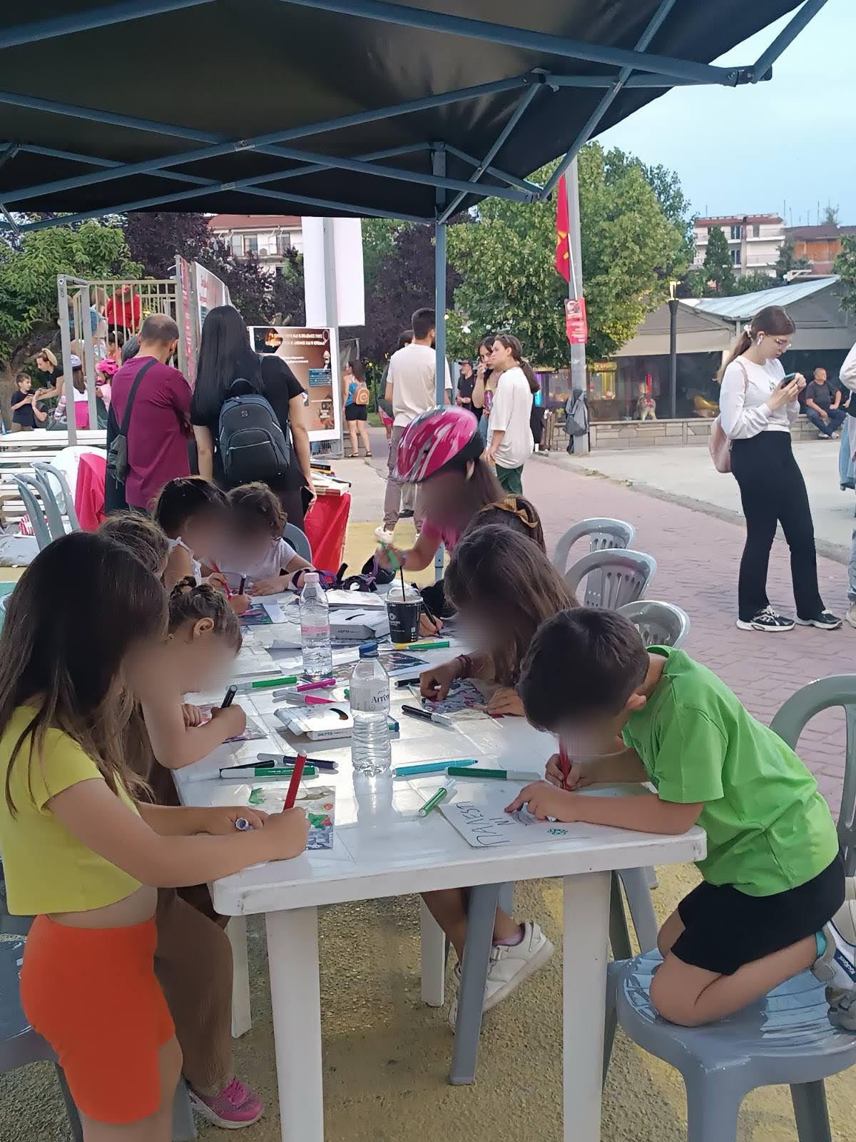 Ξεχωριστή θέση είχαν οι μικροί φίλοι της ΚΝΕ, οι οποίοι ζωγράφισαν τη νέα Γκουέρνικα που βρίσκεται στη Γάζα και την κρέμασαν στην σκηνή.
