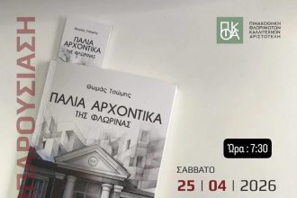 Το βιβλίο του Θωμά Τσώμη «Παλιά αρχοντικά της Φλώρινας» θα παρουσιάσουν το Σάββατο,…