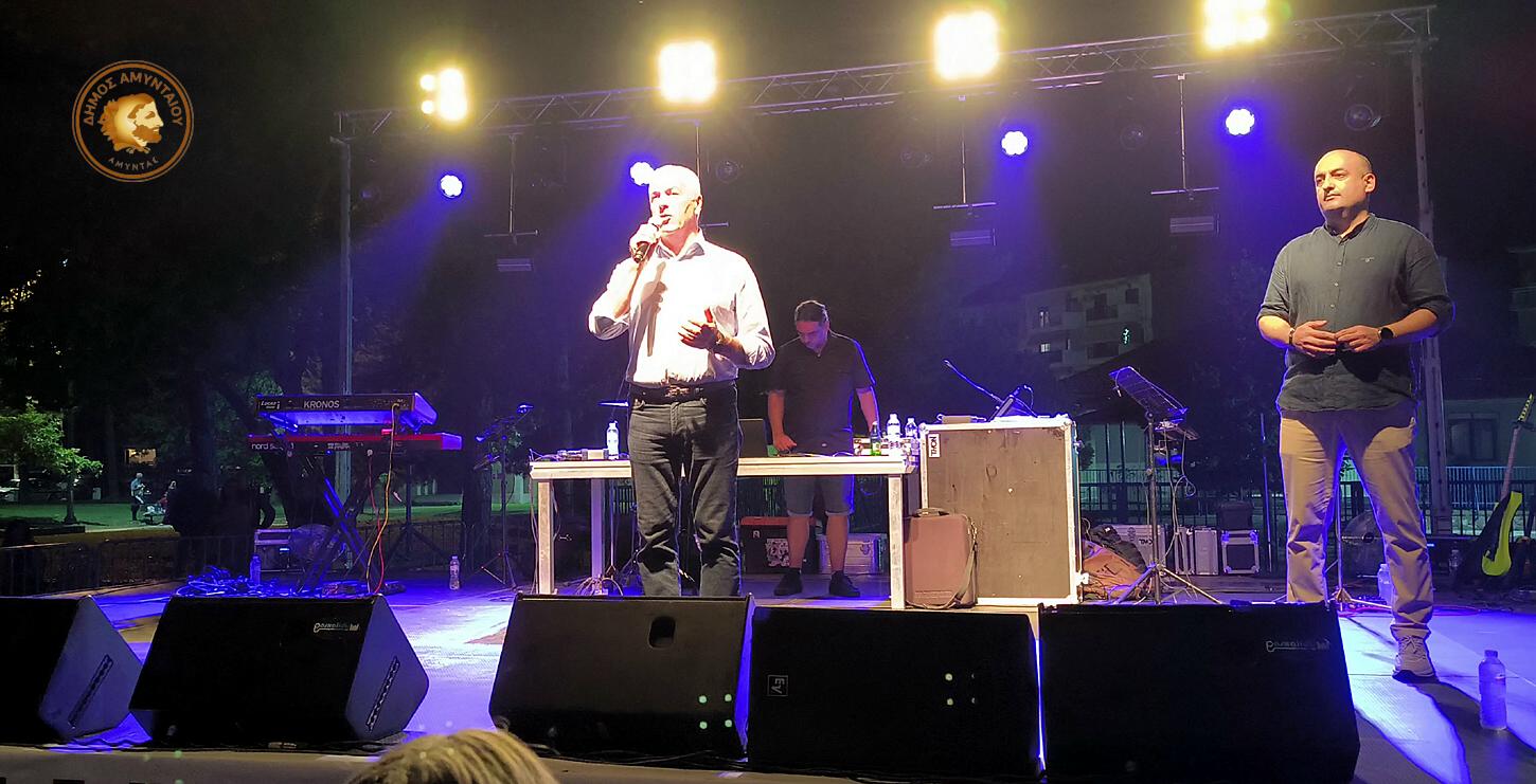 Ο Δήμαρχος Αμυνταίου κ. Ιωάννης Λιάσης, στον χαιρετισμό του, εξέφρασε την ικανοποίησή του για τη θερμή ανταπόκριση του κόσμου και τόνισε ότι στόχος της Δημοτικής Αρχής είναι τα ΑΜΥΝΤΑΙΑ να αποτελούν έναν θεσμό που θα προσφέρει ποιοτική ψυχαγωγία για όλες τις ηλικίες, με ιδιαίτερη έμφαση στη νεολαία.