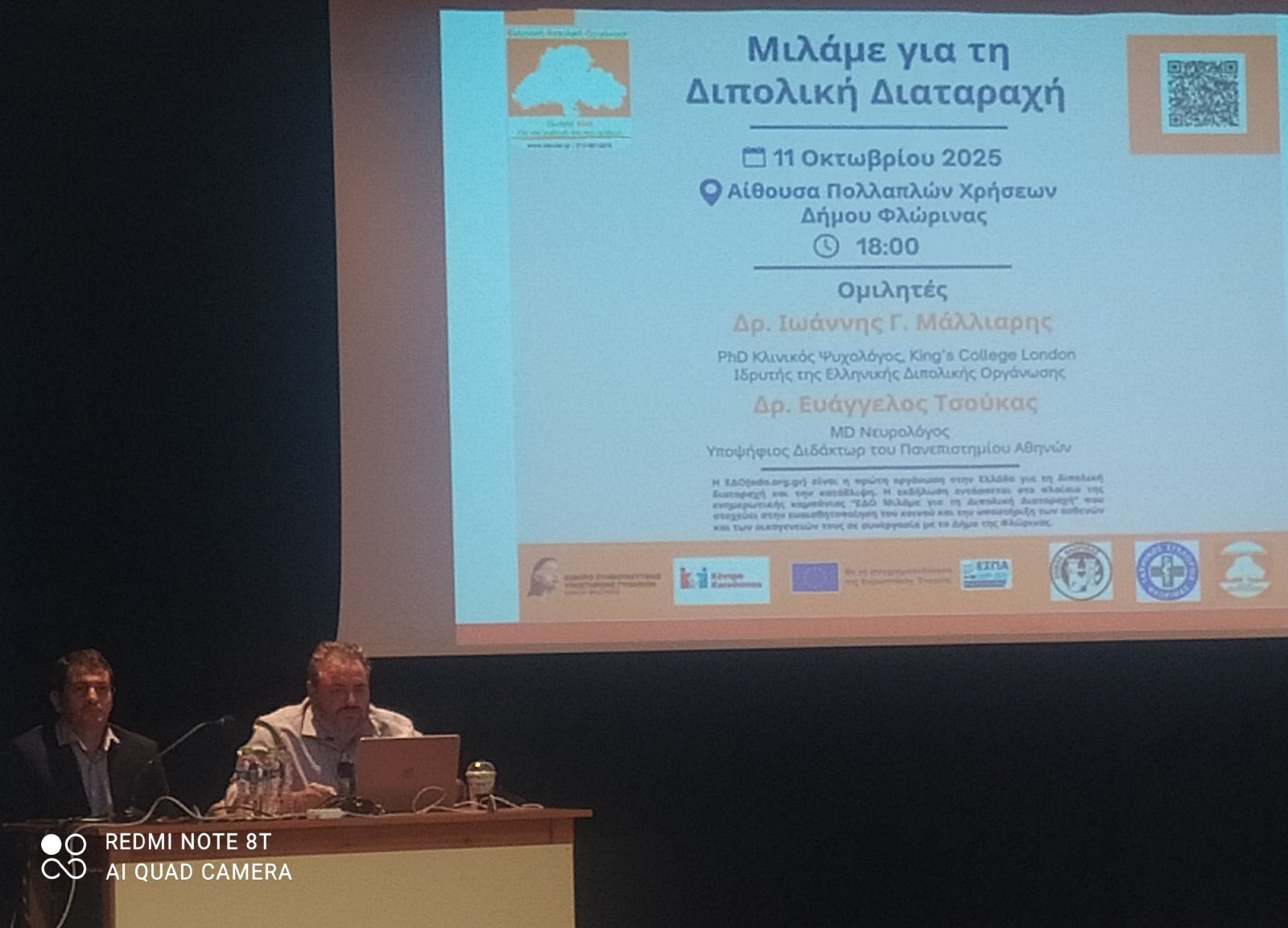 Ο Δήμος Φλώρινας, το Κέντρο Κοινότητας και το Συμβουλευτικό Κέντρο Γυναικών του Δήμου Φλώρινας, πραγματοποίησε με επιτυχία στις 11/10/2025, στην αίθουσα πολλαπλών χρήσεων, εκδήλωση με τίτλο «Μιλάμε για τη Διπολική Διαταραχή».