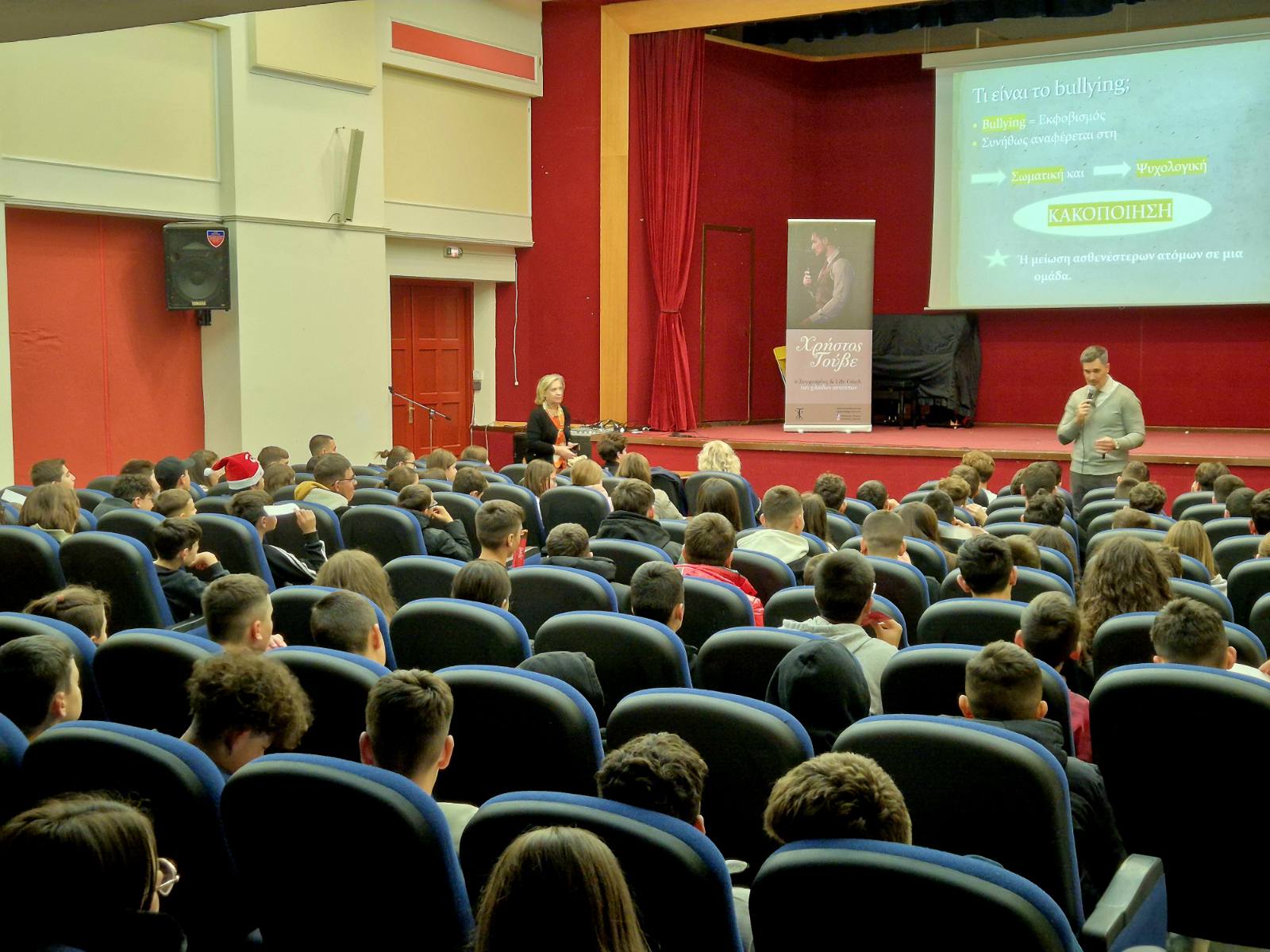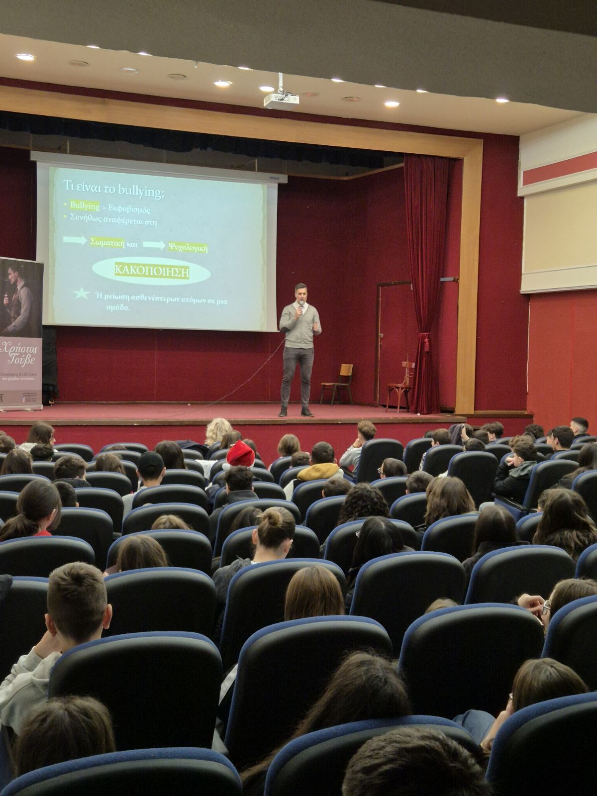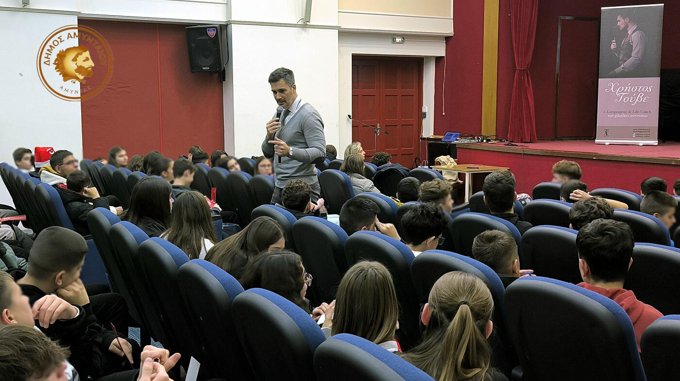 Κεντρικός ομιλητής της εκδήλωσης ήταν ο συγγραφέας και Life Coach Χρήστος Τούβε, ο οποίος μέσα από έναν διαδραστικό και άμεσο λόγο, προσέγγισε το θέμα με τρόπο κατανοητό και ουσιαστικό για τους μαθητές.