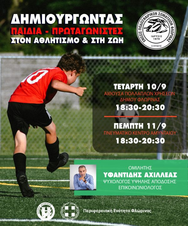 Οι εκδηλώσεις θα είναι αφιερωμένες στα παιδιά και τους γονείς και θα έχουν τίτλο: “Δημιουργώντας Παιδιά-Πρωταγωνιστές στον Αθλητισμό & στη Ζωή”.