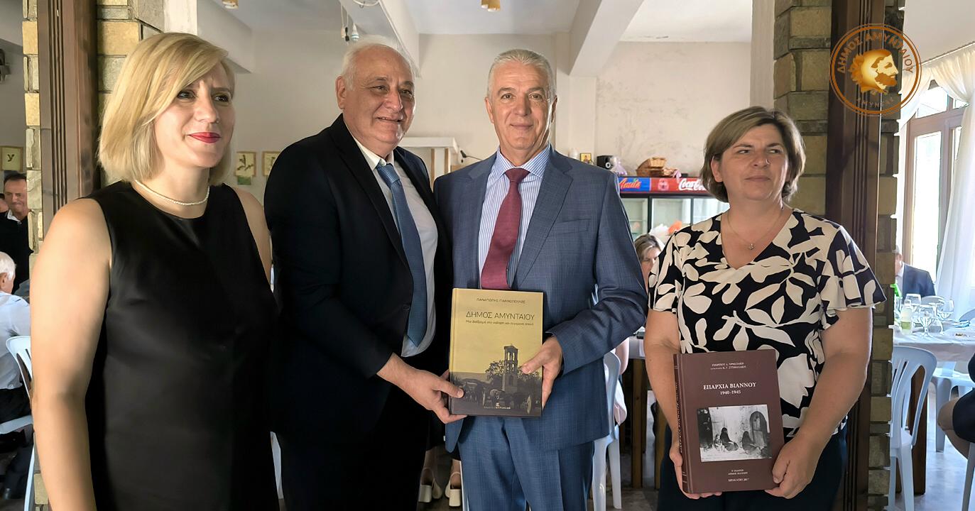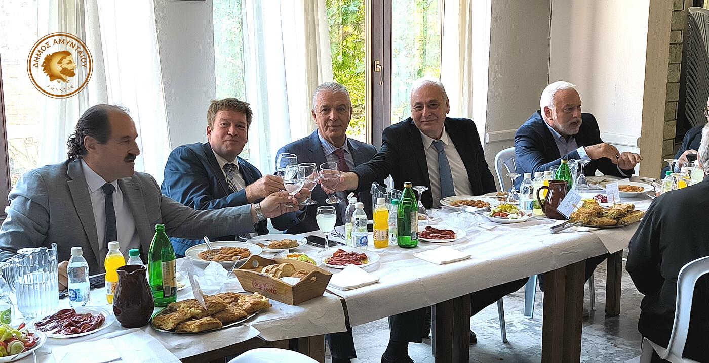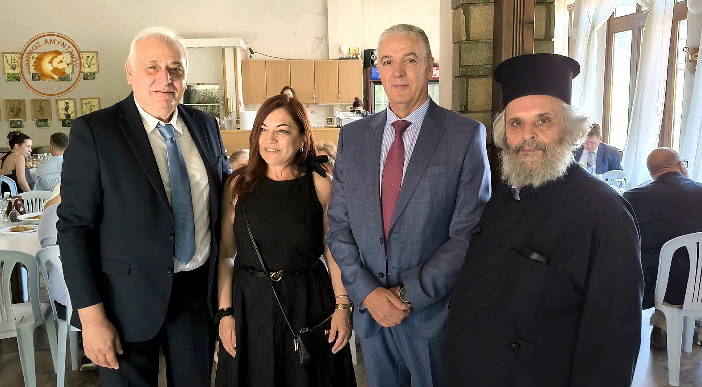 Ακολούθησε η δεξίωση που παρέθεσε ο Δήμος Αμυνταίου, η Δημοτική Κοινότητα Λεχόβου και το Εκκλησιαστικό Συμβούλιο του Ι.Ν. Αγίου Δημητρίου, σε όλους τους παρευρισκόμενους, στη διάρκεια της οποίας ο Δήμαρχος Αμυνταίου Γιάννης Λιάσης και ο Δήμαρχος Νέου Βιάνου Ηρακλείου Παύλος Μπαριτάκης, αντάλλαξαν συμβολικά αναμνηστικά δώρα, ως δείγμα αμοιβαίας εκτίμησης και ως προοίμιο μιας μελλοντικής συνεργασίας μεταξύ των δύο Δήμων.