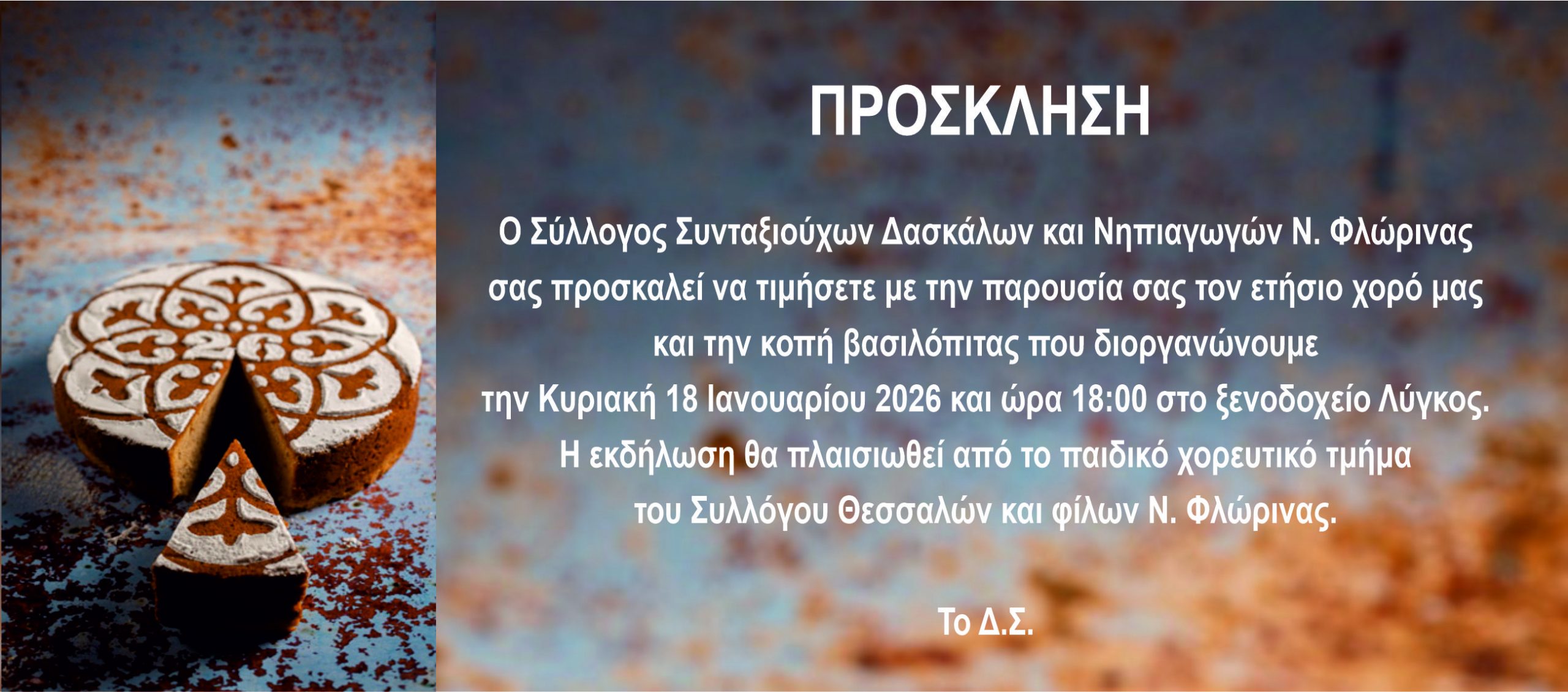 και την κοπή βασιλόπιτας που διοργανώνουμε