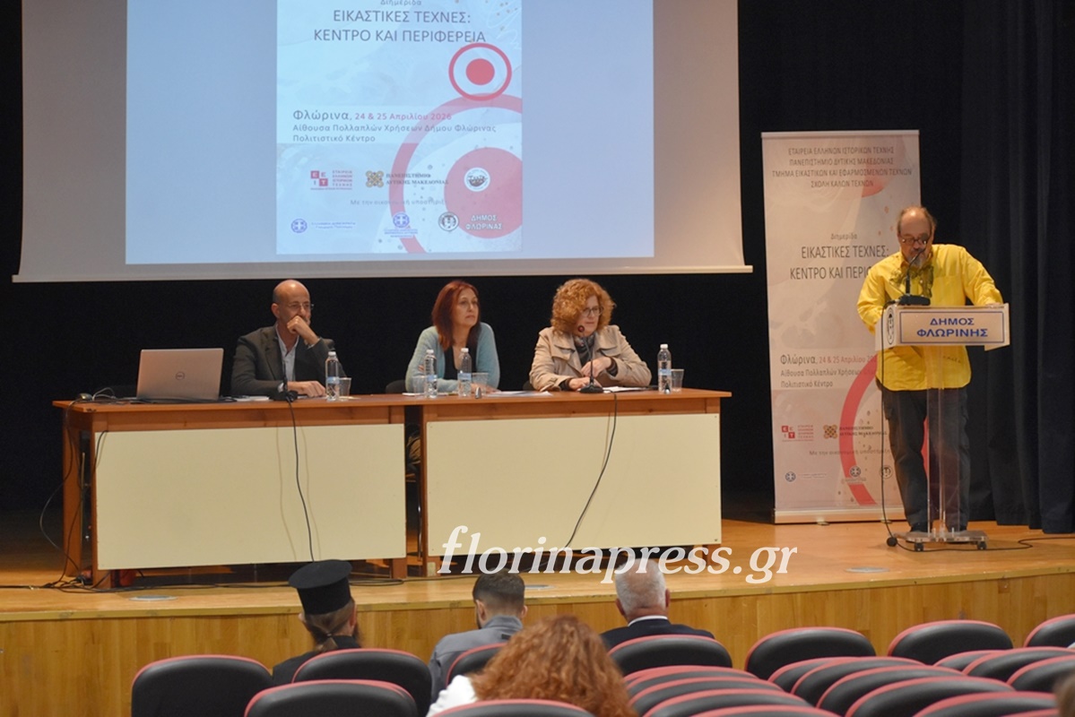 Η Εταιρεία Ελλήνων Ιστορικών Τέχνης και το Τμήμα Εικαστικών και Εφαρμοσμένων Τεχνών, της Σχολής Καλών Τεχνών του Πανεπιστημίου Δυτικής Μακεδονίας με την οικονομική υποστήριξη του Υπουργείου Πολιτισμού, της Περιφέρειας Δυτικής Μακεδονίας – Περιφερειακής Ενότητας Φλώρινας και του Δήμου Φλώρινας διοργάνωσαν τη διημερίδα με θέμα «Εικαστικές τέχνες: Κέντρο και περιφέρεια», την Παρασκευή 24 και το Σάββατο 25 Απριλίου.