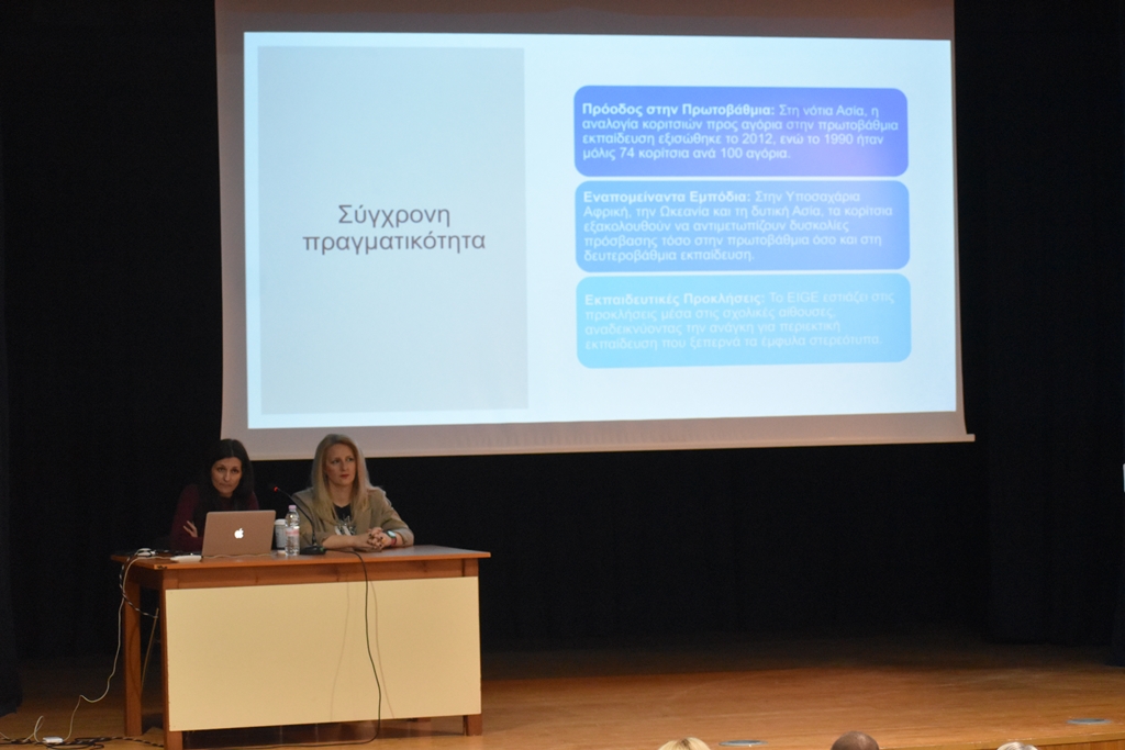 Στην τοποθέτησή της ανέδειξε τη σημασία της καλλιέργειας κουλτούρας ισότητας από τα πρώτα στάδια της εκπαιδευτικής διαδικασίας, χωρίς διακρίσεις, τόσο ως προς την πρόσβαση, όσο και ως προς τη συμμετοχή.