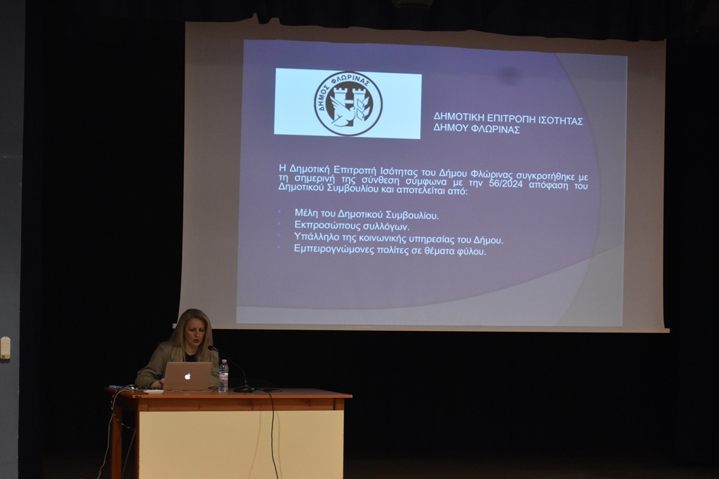 Με ιδιαίτερο ενδιαφέρον πραγματοποιήθηκε το απόγευμα της Τετάρτης 25 Φεβρουαρίου, στην Αίθουσα Πολλαπλών Χρήσεων του Δήμου Φλώρινας, η εκδήλωση ενημέρωσης και ευαισθητοποίησης που διοργάνωσε η Δημοτική Επιτροπή Ισότητας του Δήμου Φλώρινας, με τίτλο «Η ισότητα φύλων στην εκπαίδευση: Σύγχρονη πραγματικότητα και προκλήσεις για το μέλλον».
