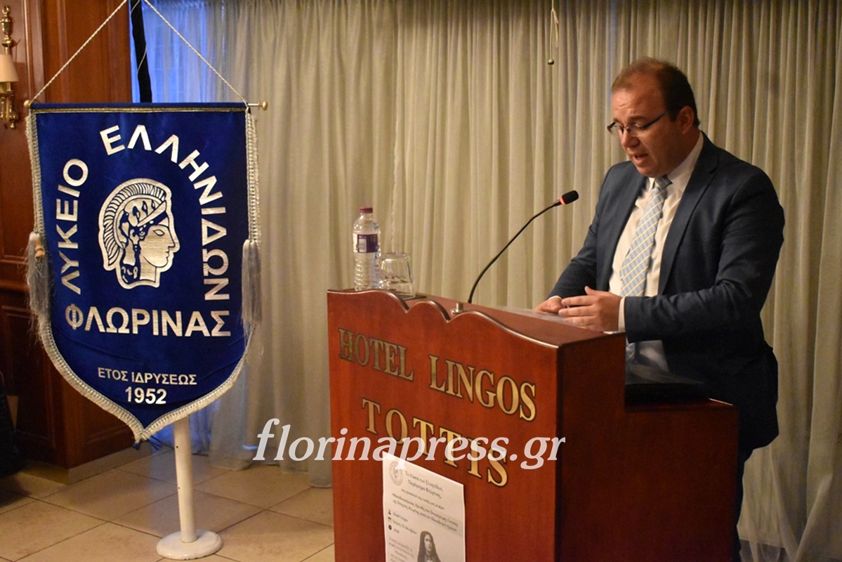 Κεντρικός ομιλητής ήταν ο Δρ. Ηλίας Μογλενίδης, Διευθυντής της Βιβλιοθήκης & του Ιστορικού Αρχείου της Ι.Ε.Θ.Π., με θέμα: «Μακεδονομάχισσες ηρωίδες και Εθνομάρτυρες γυναίκες της Επαρχίας Φλωρίνης κατά τον Μακεδονικό Αγώνα»