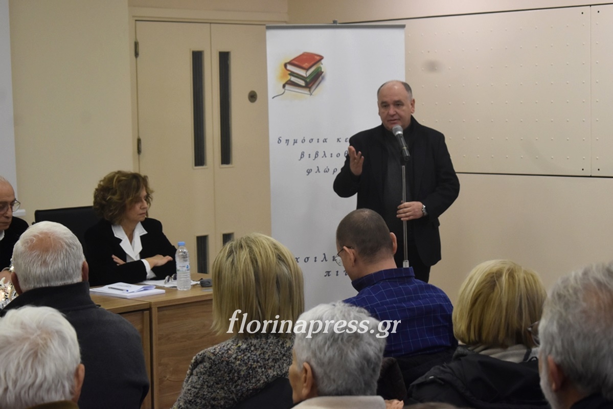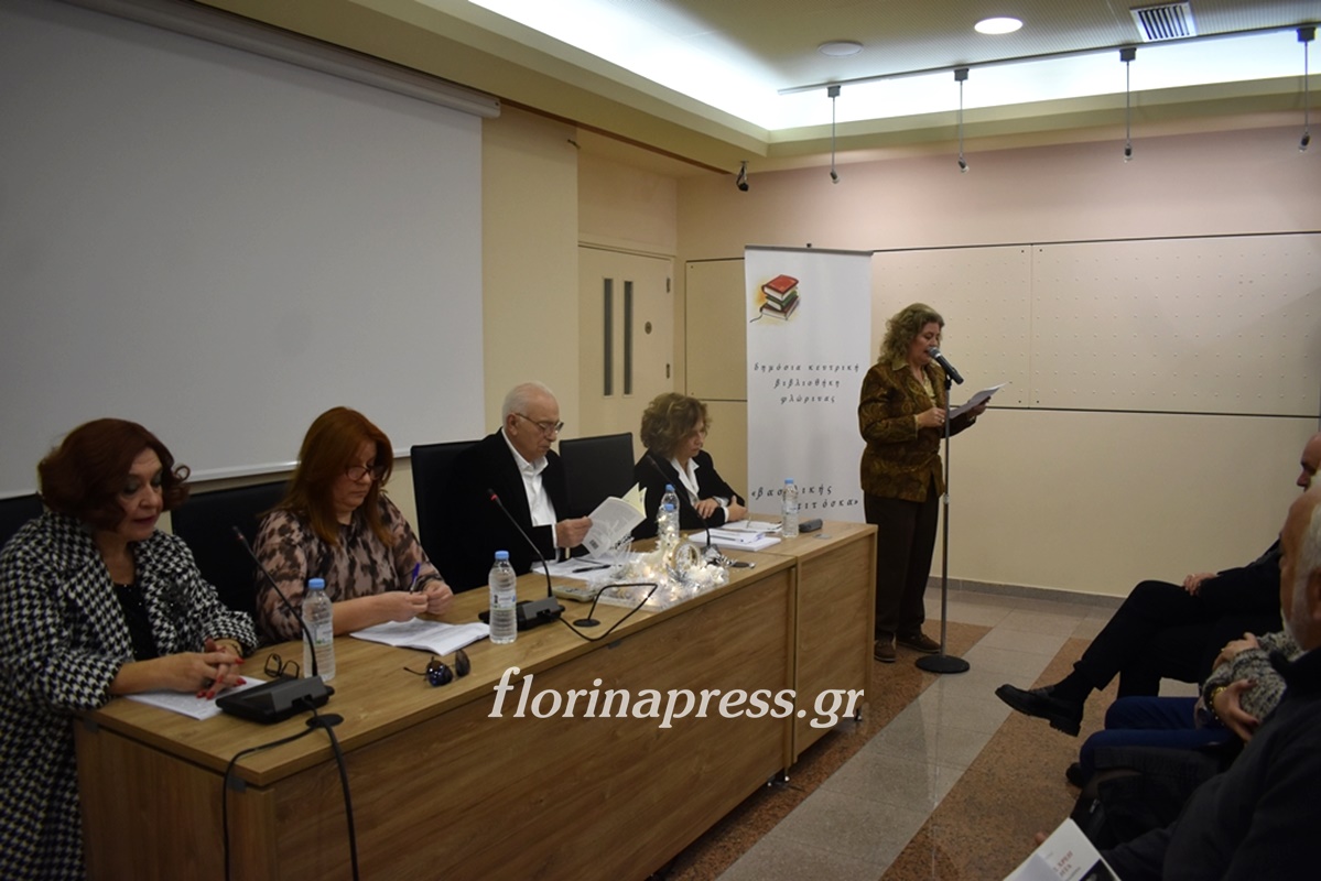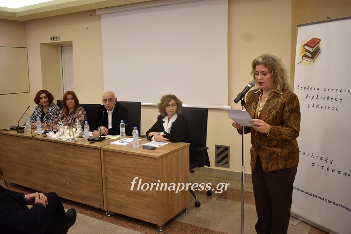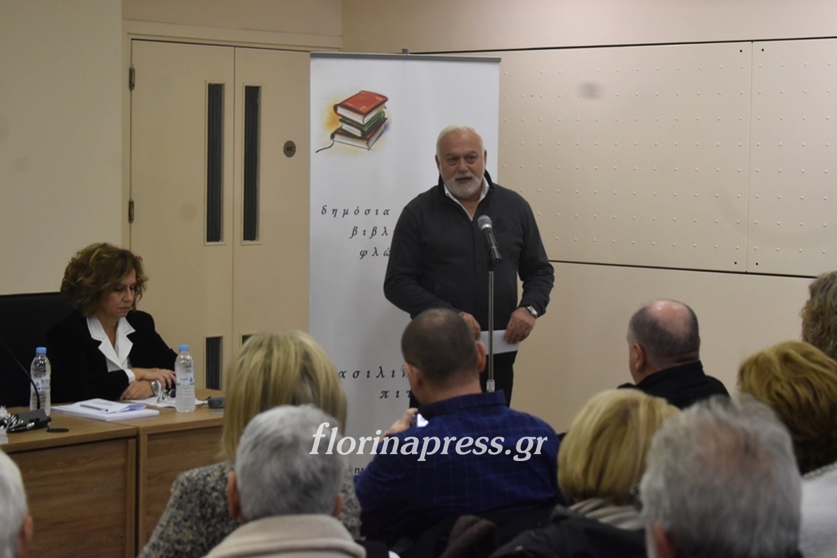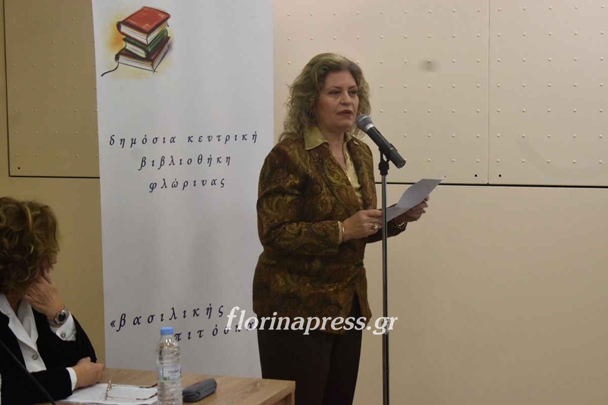 Την εκδήλωση προλόγισε η Βασιλική Μούζα, Πρόεδρος του Εφορευτικού Συμβουλίου της Βιβλιοθήκης και χαιρετισμό απηύθυναν ο Βουλευτής Σταύρος Παπασωτηρίου, ο Αντιδήμαρχος Φλώρινας Μιχάλης Χάτζιος και η Κοσμήτορας της Σχολής Κοινωνικών και Ανθρωπιστικών Επιστημών Σοφία Ηλιάδου – Τάχου.