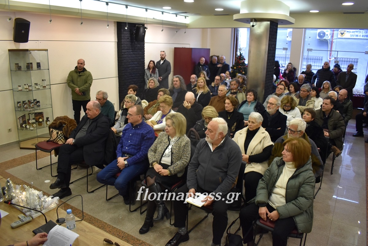 Η παρουσίαση έλαβε χώρα στην γεμάτη από Φλωρινιώτες αίθουσα εκδηλώσεων του Επιμελητηρίου Φλώρινας.