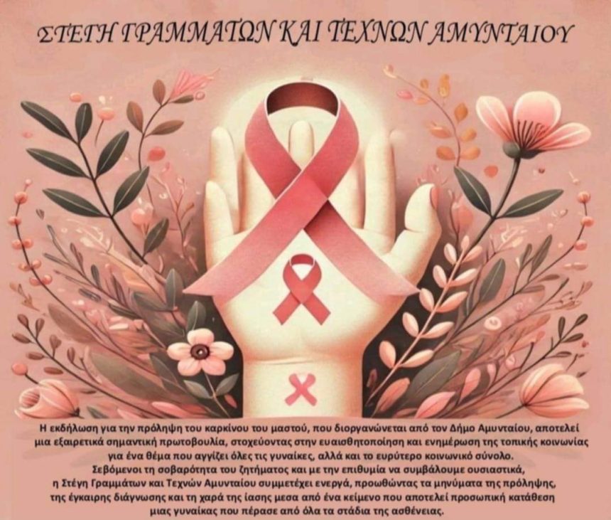 Η εκδήλωση για την πρόληψη του καρκίνου του μαστού, που διοργανώθηκε από τον Δήμο Αμυνταίου, αποτελεί μια εξαιρετικά σημαντική πρωτοβουλία, στοχεύοντας στην ευαισθητοποίηση και ενημέρωση της τοπικής κοινωνίας για ένα θέμα που αγγίζει όλες τις γυναίκες, αλλά και το ευρύτερο κοινωνικό σύνολο.
