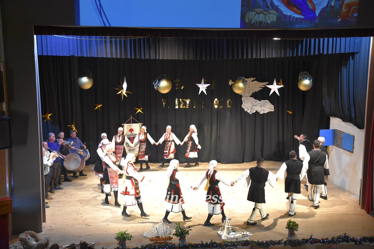 Στην εκδήλωση, που έλαβε χώρα στην κατάμεστη αίθουσα θεάτρου του συλλόγου το βράδυ της Κυριακής 22 Δεκεμβρίου, συμμετείχαν το Τμήμα Εθνογραφίας και Χορού Φ.Σ.Φ. «Ο Αριστοτέλης», ο Πολιτιστικός Σύλλογος Χαριλάου «Οι Τρεις Ιεράρχες» και ο Πολιτιστικός Σύλλογος Νέων Μουδανιών “Ο ΦΑΡΟΣ”, υπό τους ήχους της Μπάντας Χάλκινων Πνευστών «Τοπική Παράδοση».