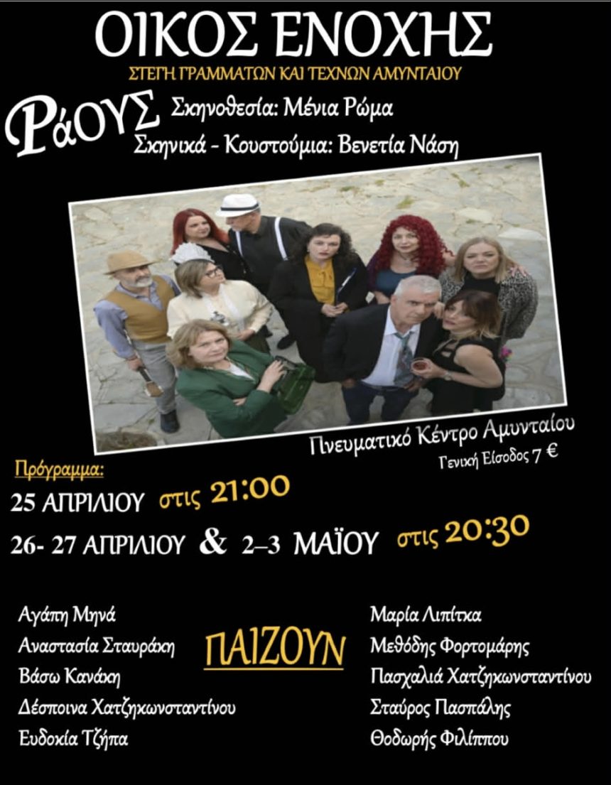 Η Στέγη Γραμμάτων και Τεχνών Αμυνταίου παρουσιάζει τη θεατρική παράσταση «Οίκος Ενοχής» η «ΡΑΟΥΣ» των Μ. Ρέππα και Θ. Παπαθανασίου!