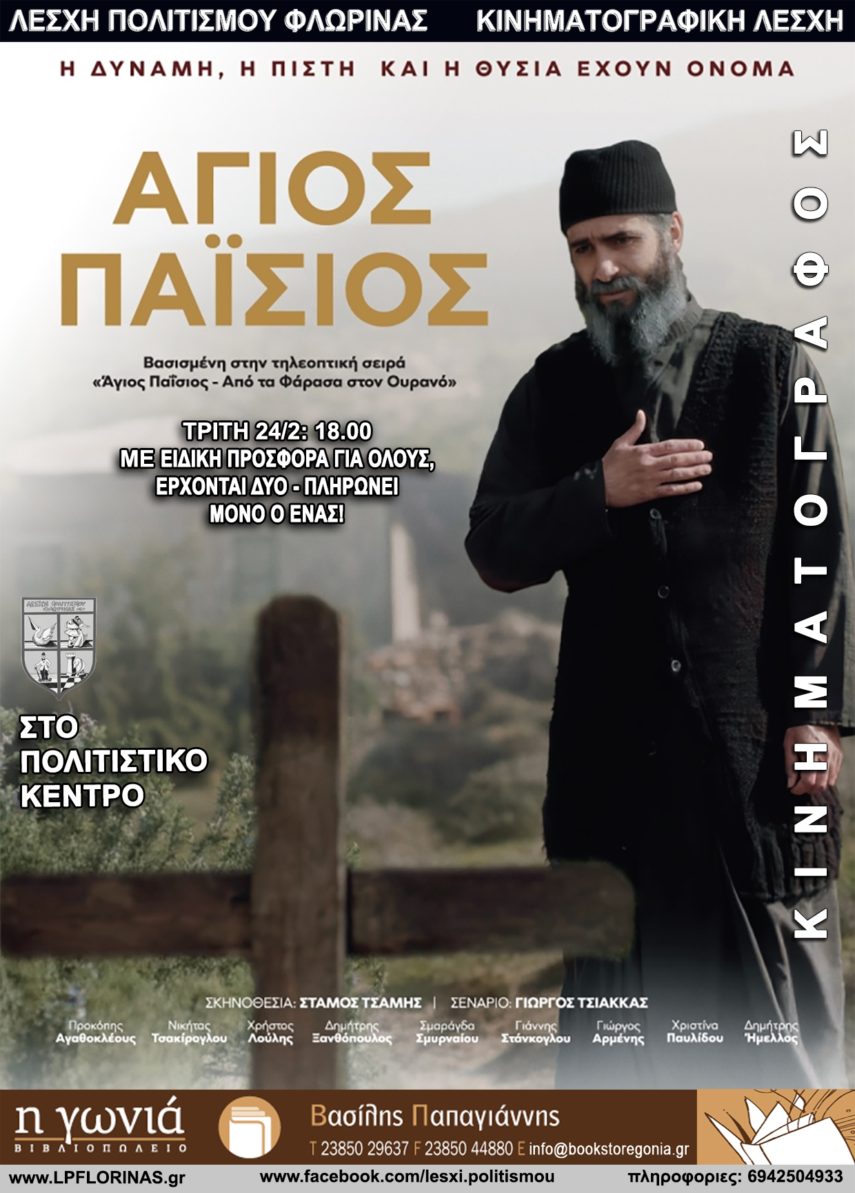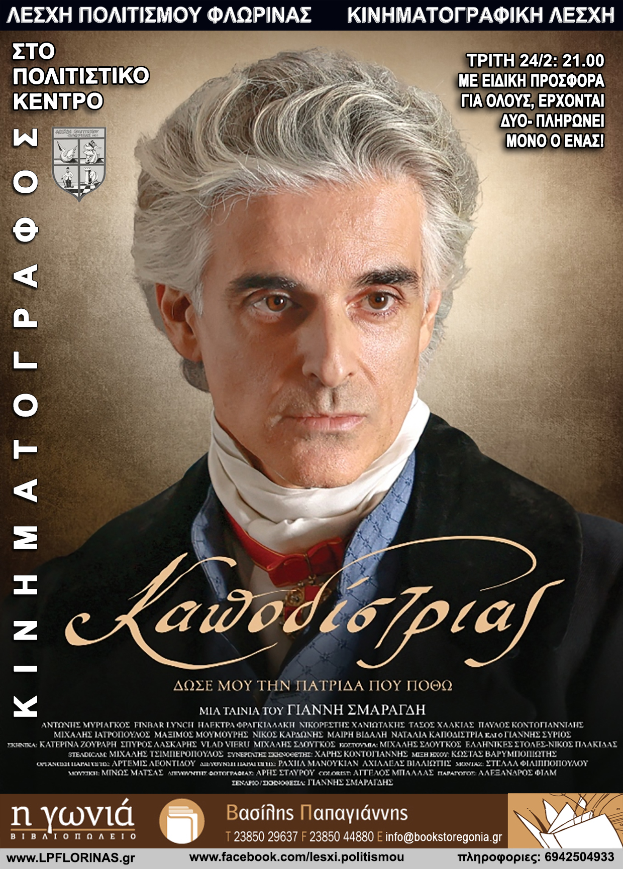 Μετά το 1ο Διεθνές Φεστιβάλ Ταινιών Μικρού Μήκους (Florina International Film Festival) και την αργία της Καθαράς Δευτέρας, ακολουθούν την Τρίτη 24/2 προβολές των ταινιών “ΑΓΙΟΣ ΠΑΪΣΙΟΣ” και “ΚΑΠΟΔΙΣΤΡΙΑΣ” με ειδική προσφορά για όλους “ΕΡΧΟΝΤΑΙ ΔΥΟ – ΠΛΗΡΩΝΕΙ ΜΟΝΟ Ο ΕΝΑΣ”!