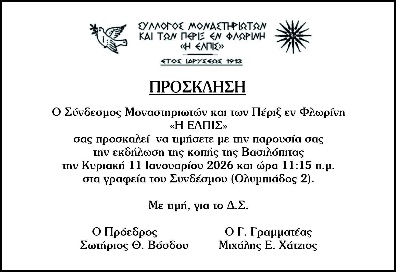 Κοπή βασιλόπιτας του Συνδέσμου Μοναστηριωτών και των Πέριξ εν Φλωρίνη «Η ΕΛΠΙΣ»