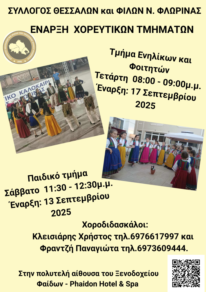 Με χοροδιδασκάλους τους Κλεισιάρη Χρήστο τηλ.6976617997 και Φραντζή Παναγιώτα τηλ.6973609444.