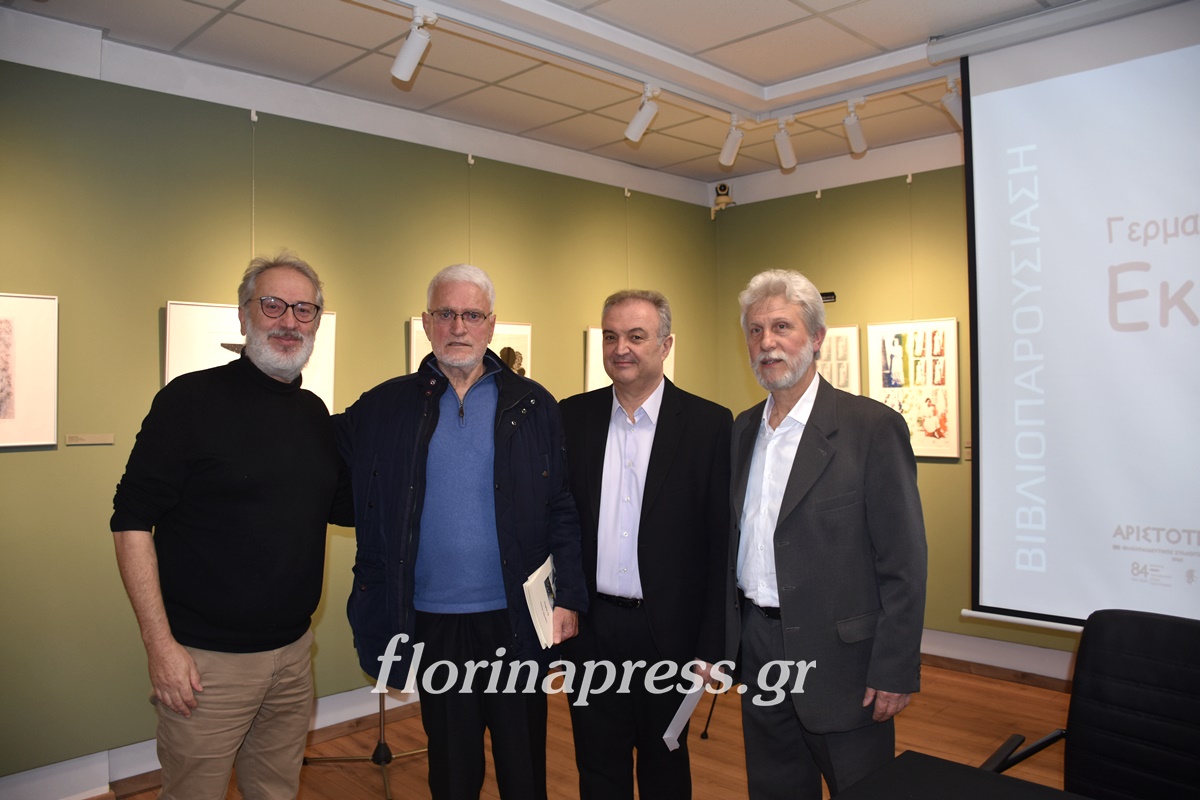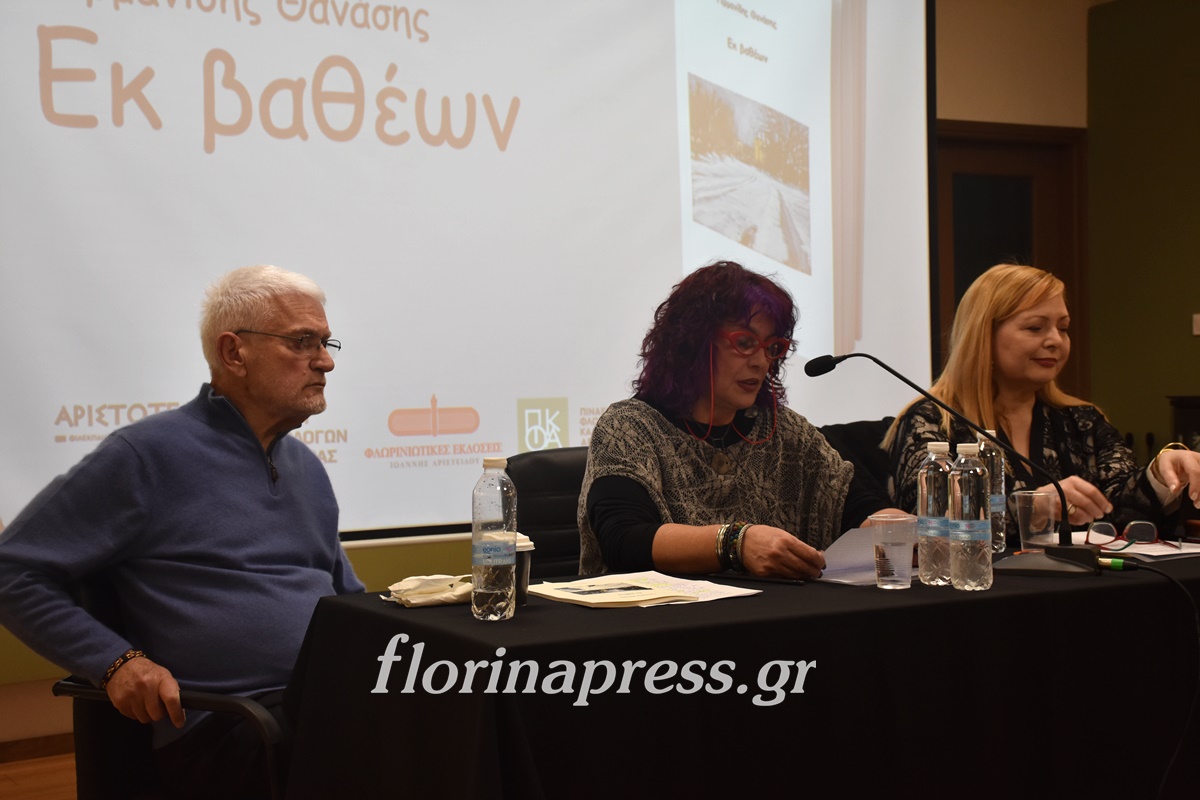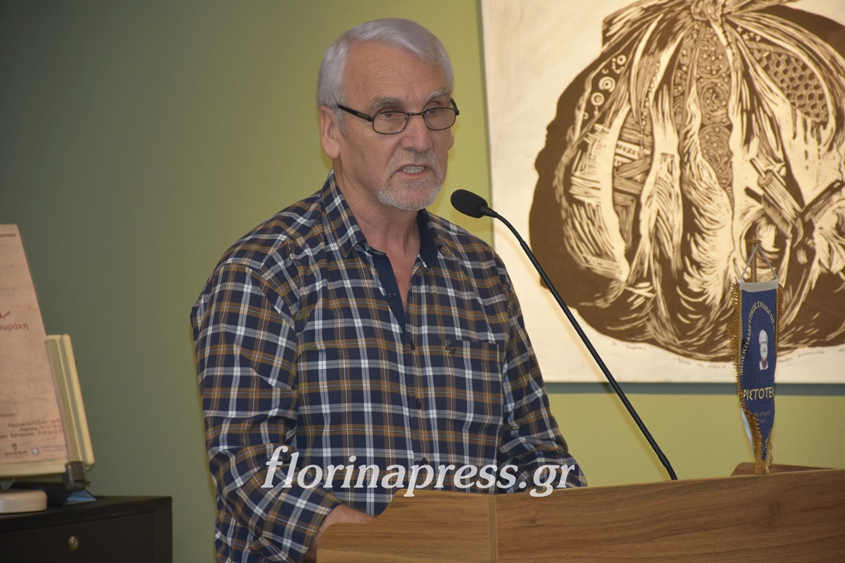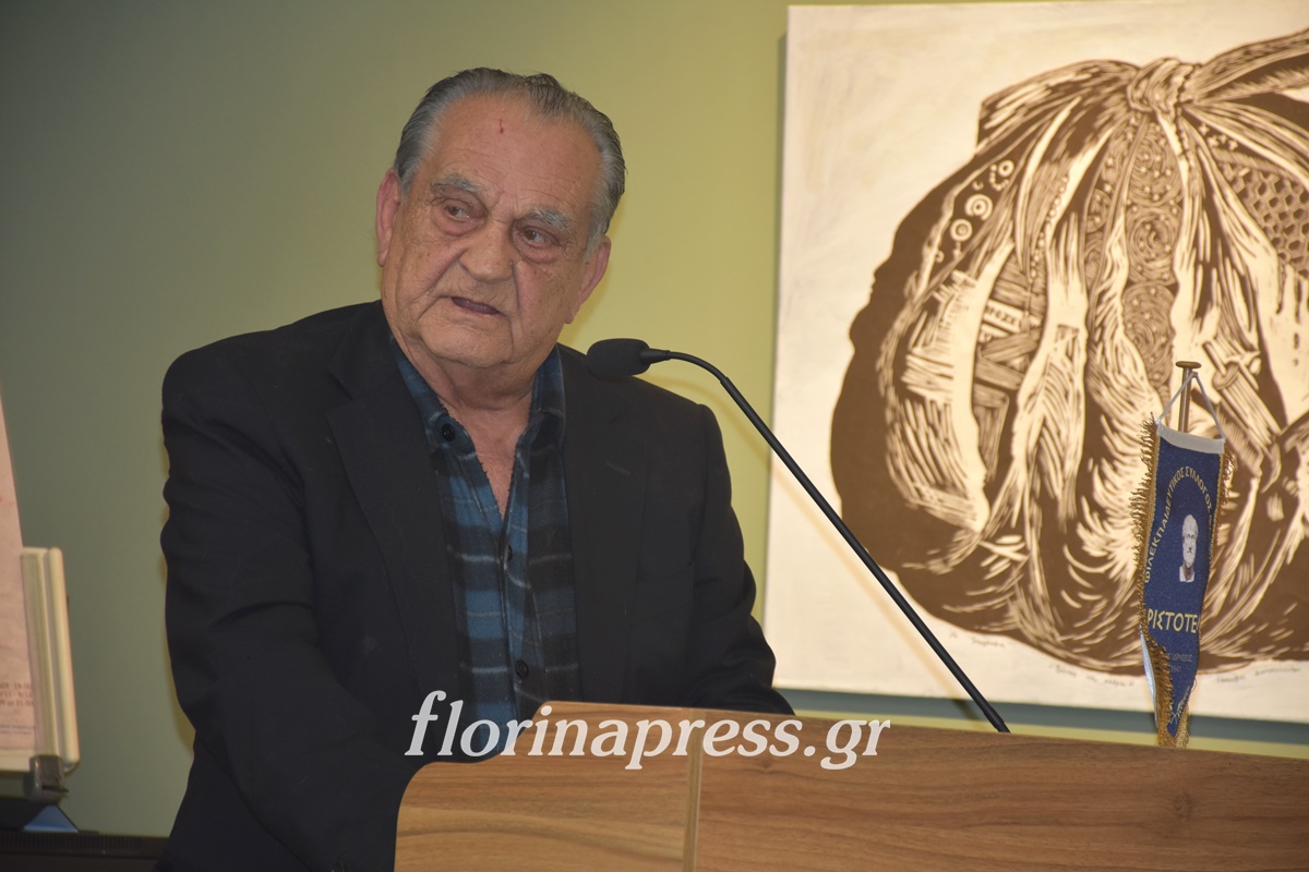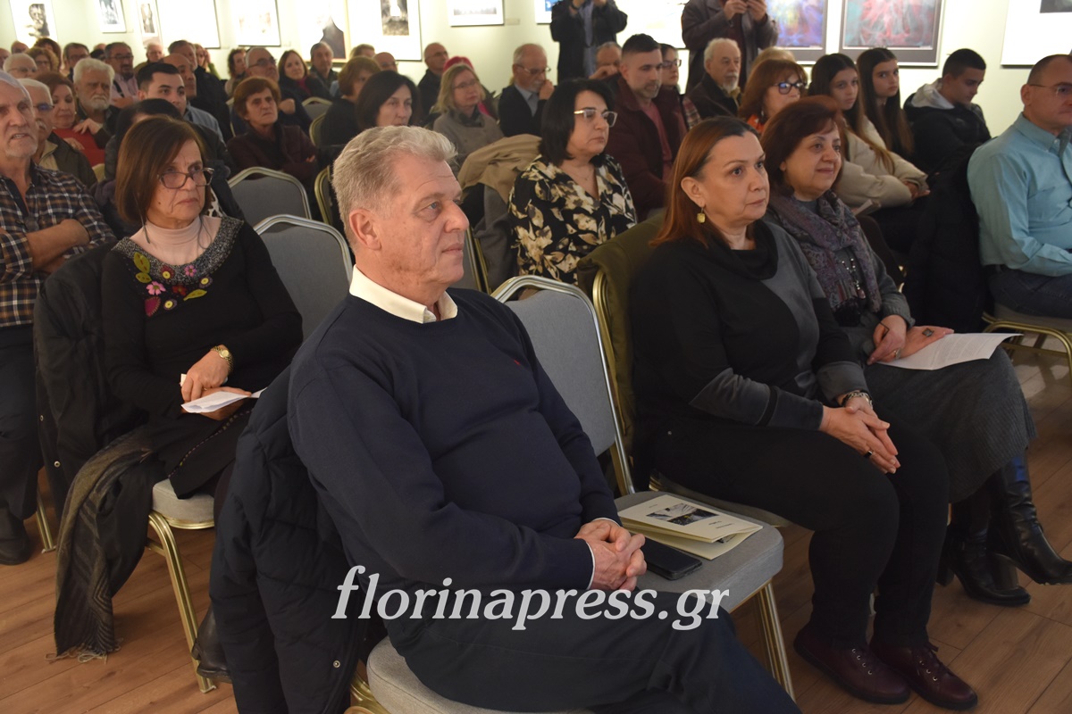 Το βιβλίο παρουσίασε η φιλόλογος Κατερίνα Κουλουκάτση, για τον συγγραφέα μίλησε ο Πρόεδρος του “Αριστοτέλη” Κωνσταντίνος Ραπτόπουλος Χατζηστεφάνου, ενώ χαιρετισμό απηύθυνε η Πρόεδρος της Ένωσης Φιλολόγων Φλώρινας Αθηνά Ζωγράφου.