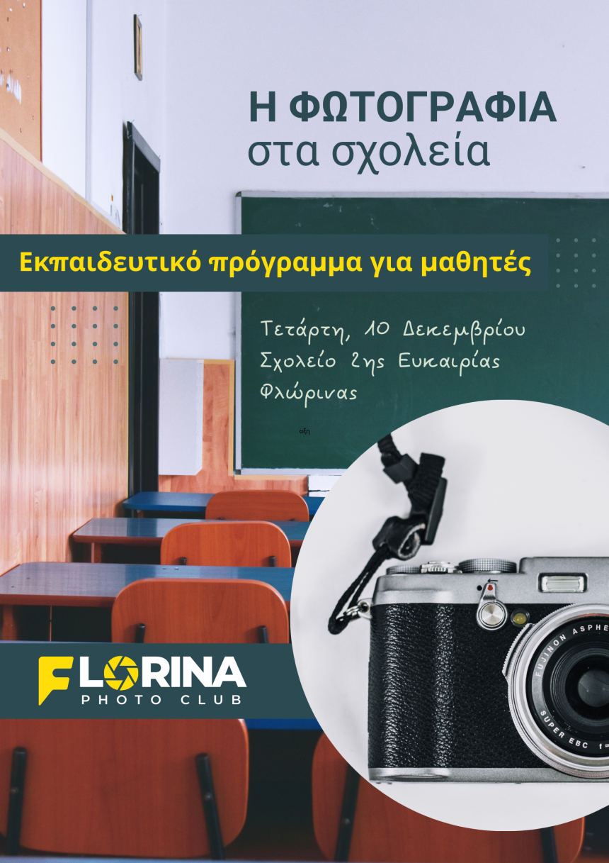 Η δράση αυτή, που πραγματοποιείται σε συνεργασία με το Σχολείο Δεύτερης Ευκαιρίας Φλώρινας, έχει ως στόχο να φέρει την τέχνη της φωτογραφίας στους μαθητές μέσω ενός φωτογραφικού workshop με θέμα «Εισαγωγή στη Φωτογραφία».
