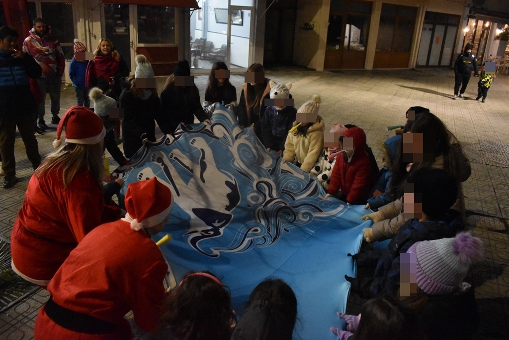 Κάτω από το Χριστουγεννιάτικο Δέντρο, δεκάδες παιδιά, αλλά και γονείς, έπαιξαν, χόρεψαν και διασκέδασαν με τη συμβολή των μελών της ομάδας “Το φουσκωτό μπαλόνι” και κέρδισαν ως “έπαθλα” ζαχαρωτά και άλλα δώρα.